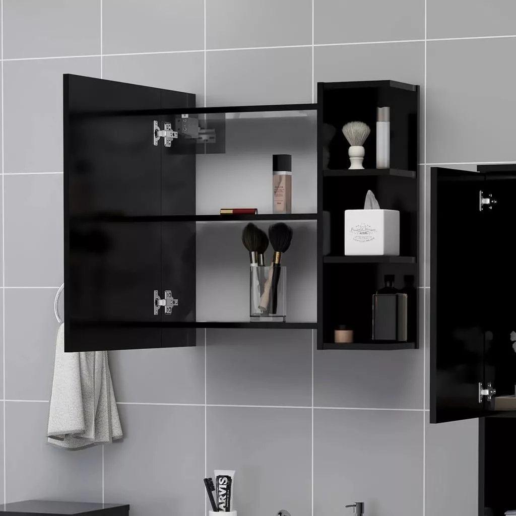 fekete szerelt fa tükrös fürdőszoba szekrény 62,5x20,5x64 cm