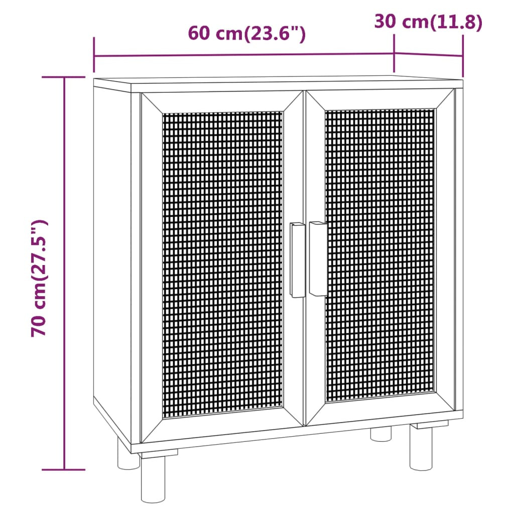 Ez a praktikus tálalószekrény számos igényét kielégíti, és a helyiség ideális kiegészítője lesz. Tartós anyag: A szerelt fa kivételes minőségű, sima felületű, szilárd, stabil, és ellenáll a nedvességnek.Bőséges tárolóhely: A 2 rekesszel felszerelt szekrény bőséges tárolóhelyet kínál alapvető kellékei kézközelben történő rendezett tárolásához. Emellett a természetes rattan szövésű ajtó extra szépséggel ruházza fel.Tömör fenyőfa lábak: A falábak természetes és kellemes megjelenést kölcsönöznek a tálalószekrénynek, és a stabilitást is biztosítják. Bármilyen környezetbe illeni fog.Masszív felső lap: A szekrény felső lapján elhelyezheti kedvenc fényképeit, dísztárgyait vagy virágokat a szoba dekorációjának gazdagítása érdekében. Megjegyzés:Az egyszerű összeszerelés érdekében minden termékhez mellékelünk összeszerelési útmutatót. Figyelem:A dőlés megakadályozása érdekében a terméket a mellékelt tartóelem segítségével rögzíteni kell a falhoz.