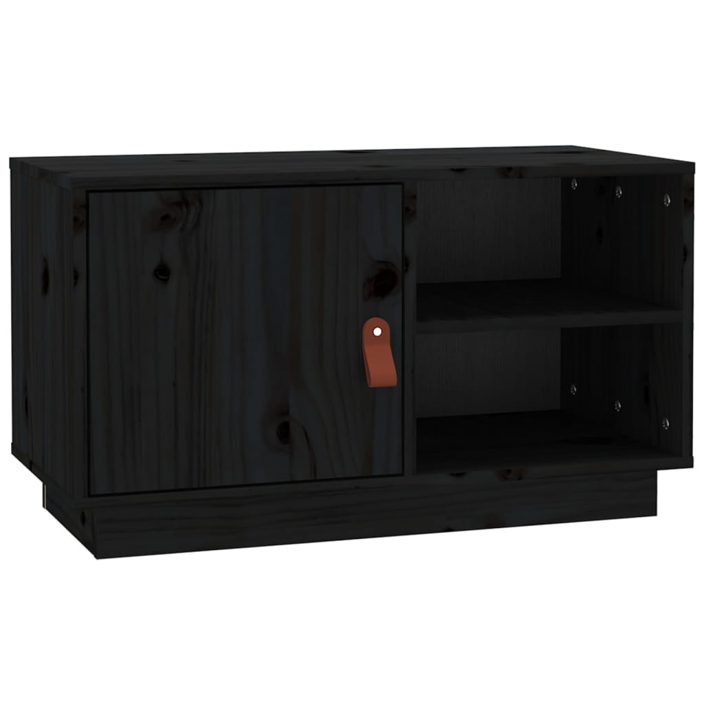 fekete tömör fenyőfa TV-szekrény 70 x 34 x 40 cm