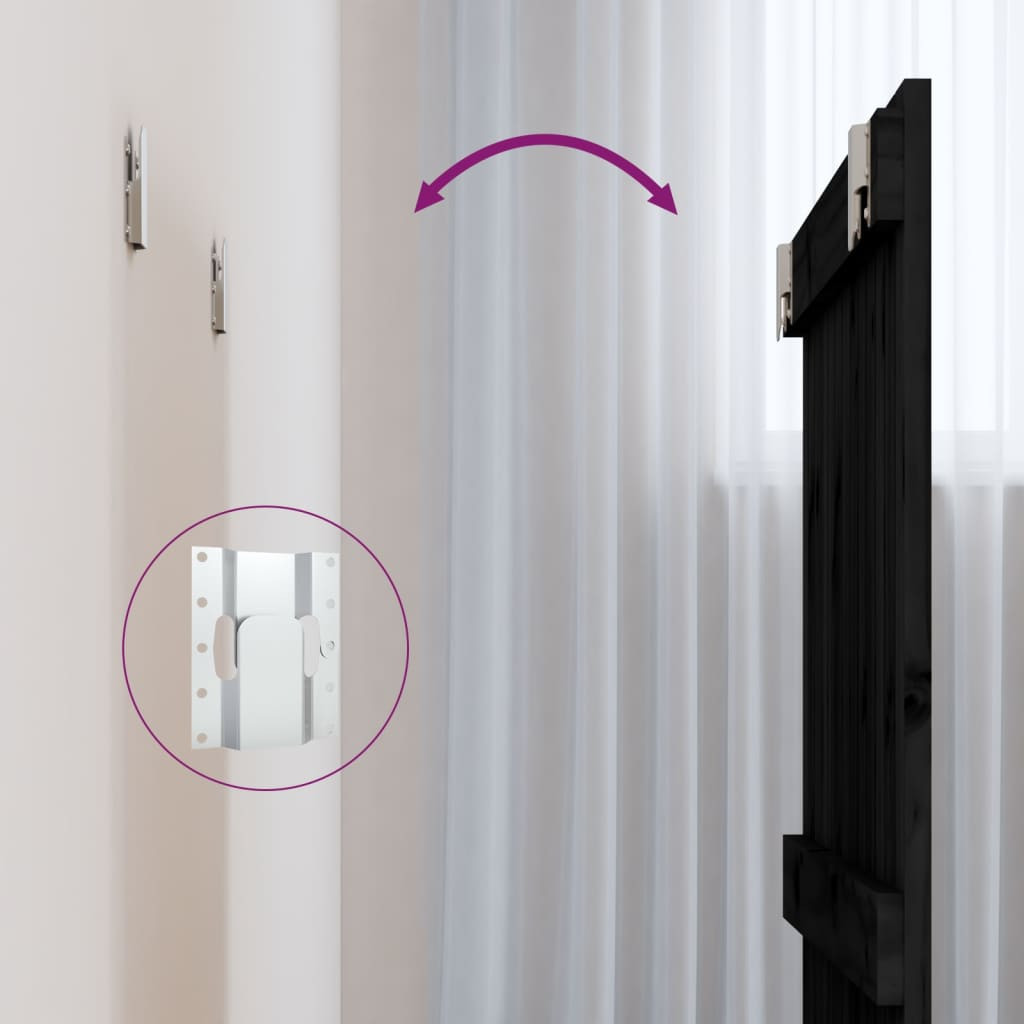 fekete tömör fenyőfa fali fejtámla 82,5x3x90 cm