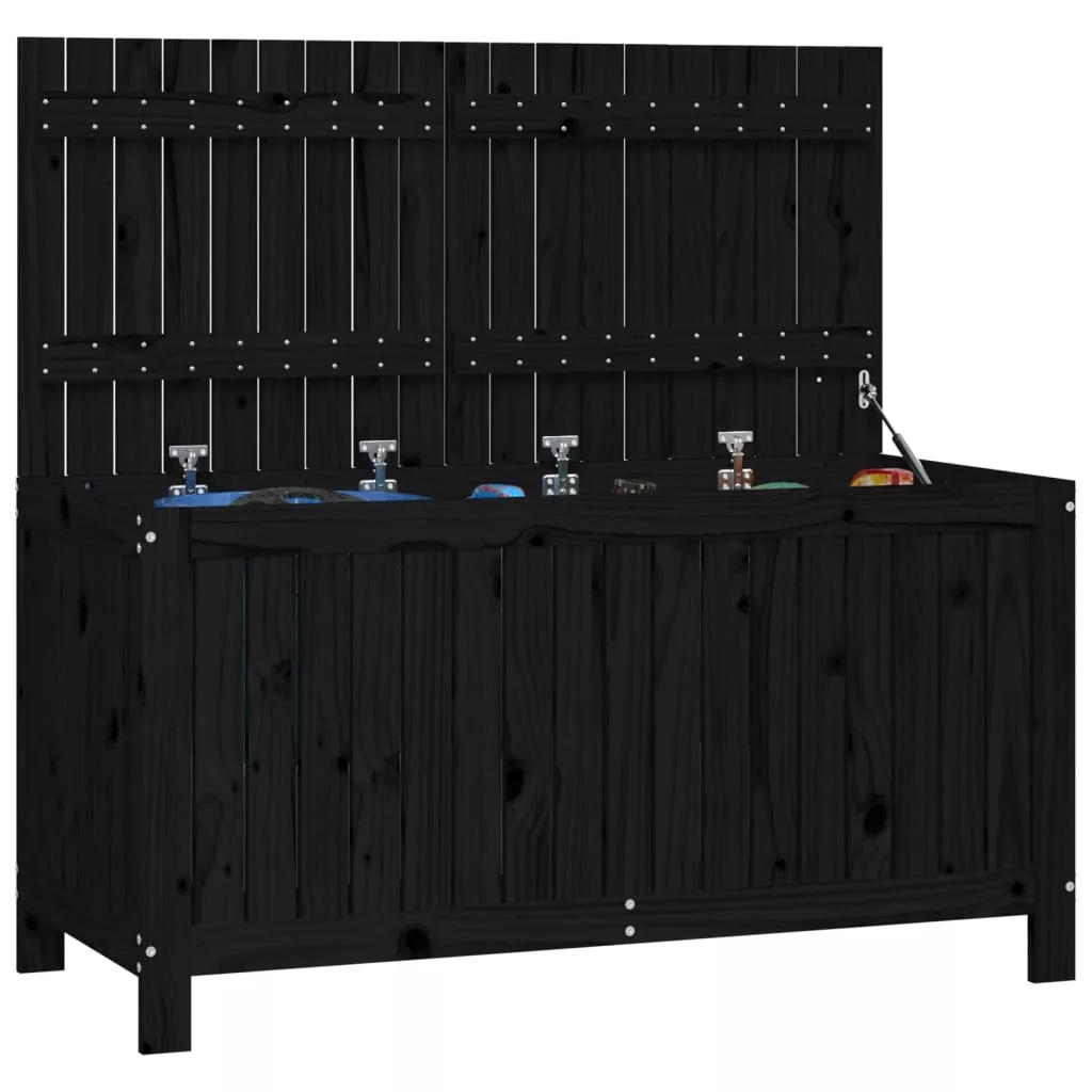 fekete tömör fenyőfa kerti tárolóláda 121x55x64 cm