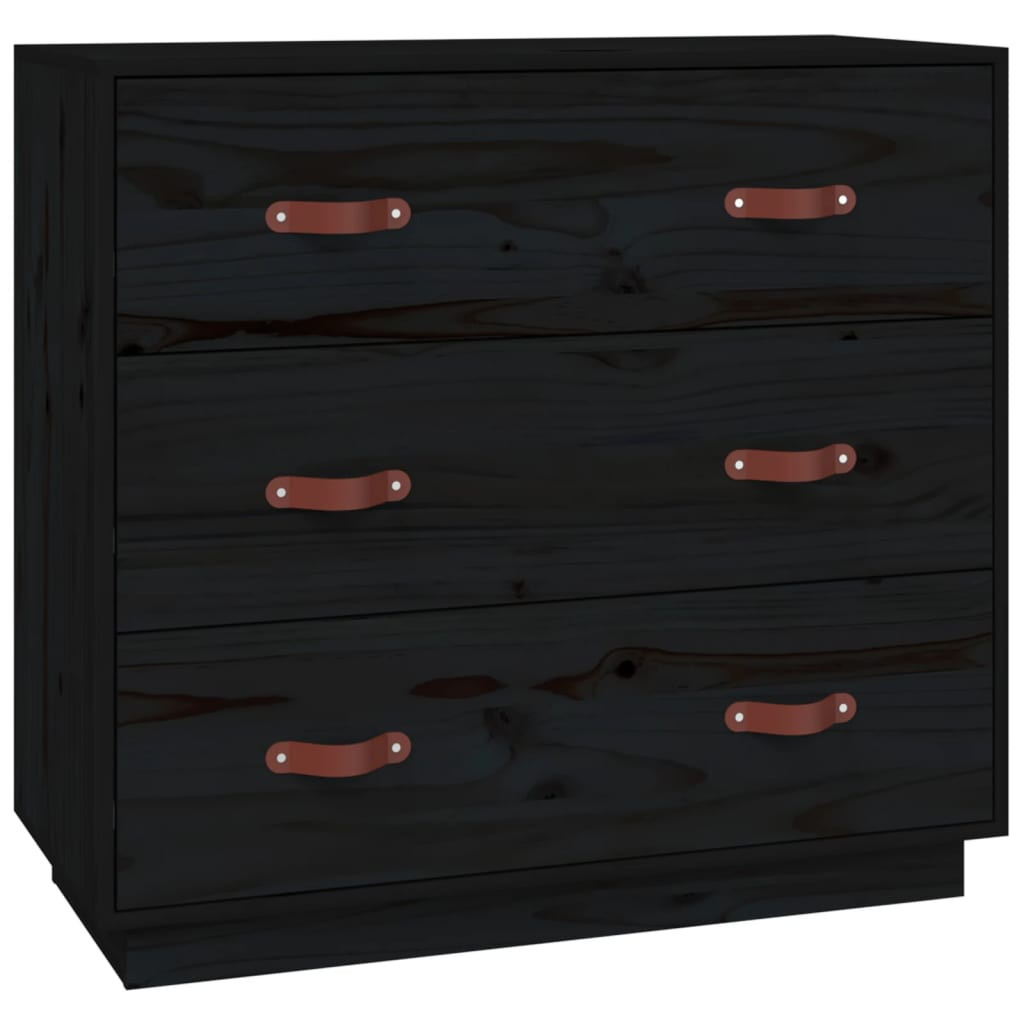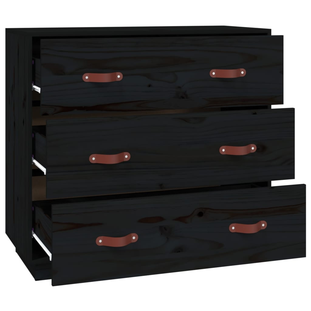 fekete tömör fenyőfa tálalószekrény 80 x 40 x 75 cm