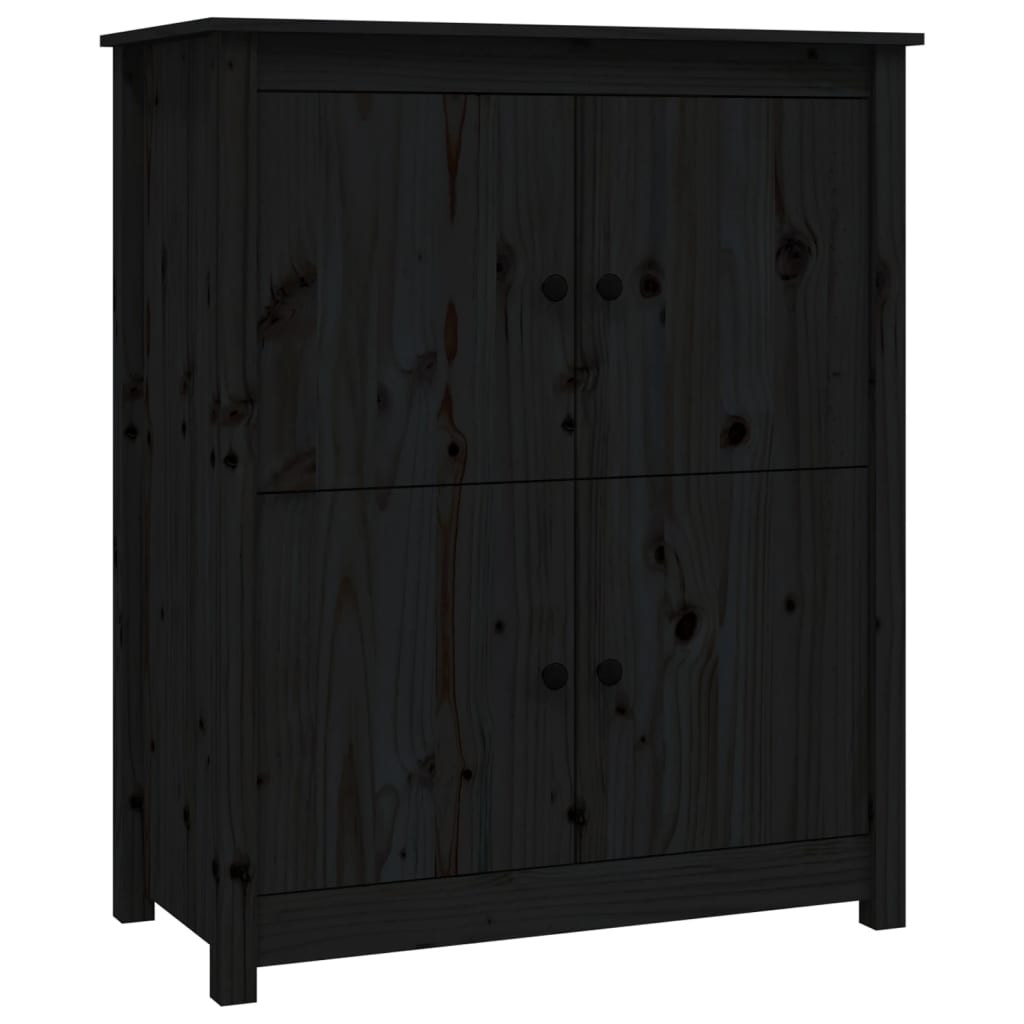fekete tömör fenyőfa tálalószekrény 83 x 41,5 x 100 cm