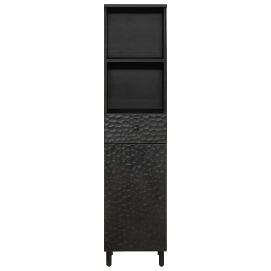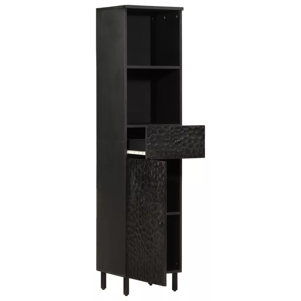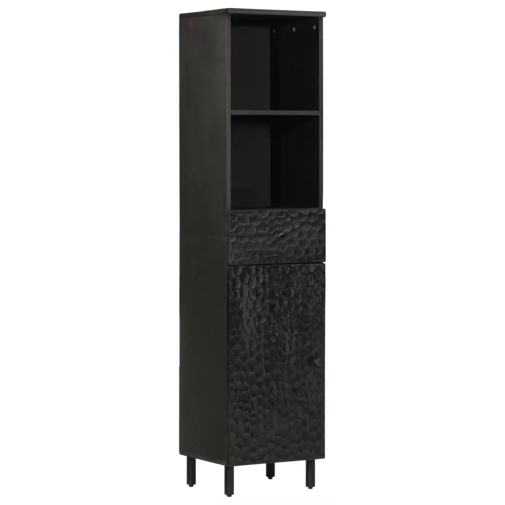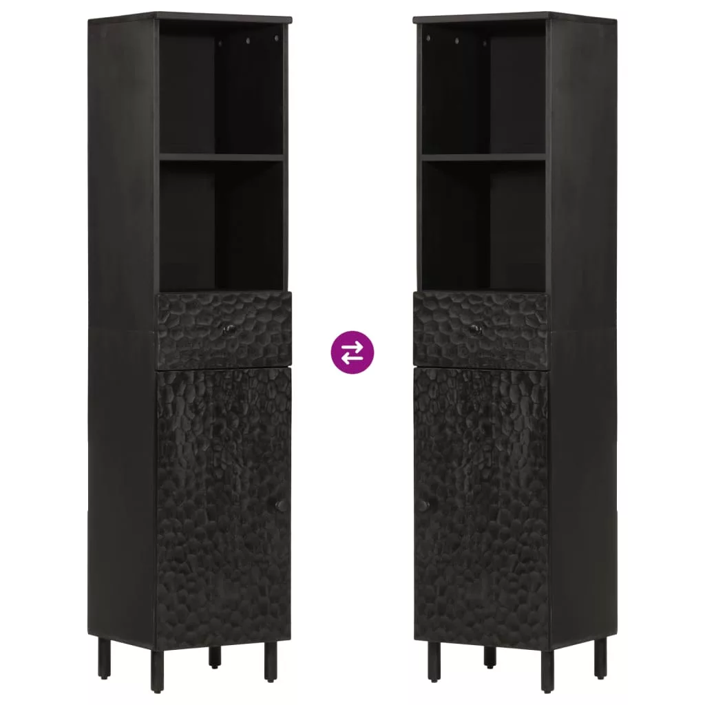 Ez a fürdőszobaszekrény nagyszerű választás fürdőszobája rendezetté varázsolásához! Tömör mangófa: A tömör mangófa egy erős, trópusi keményfa, melyből strapabíró bútorok készíthetőek. A fa gyönyörű erezetének köszönhetően minden darab kissé különbözik a többitől. A tömör mangófából készült fürdőszobai tárolószekrény rendkívül strapabíró és stabil.Bőséges tárolóhely: Ez a fürdőszobaszekrény bőséges helyet kínál alapvető kellékei kézközelben történő rendezett tárolásához.Rugalmas ajtó telepítés: Az ajtót saját igényei szerint bal vagy jobb oldalra is beépítheti.Masszív lábak: A vaslábak szilárdságot és stabilitást biztosítanak a fürdőszobai szekrénynek. Figyelem:A felborulás elkerülése érdekében ezt a terméket a mellékelt fali rögzítőeszközzel kell használni.