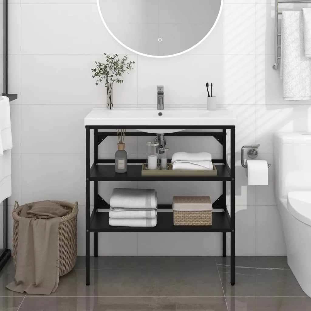 fekete vas fürdőszobai mosdókagylókeret 79 x 38 x 83 cm