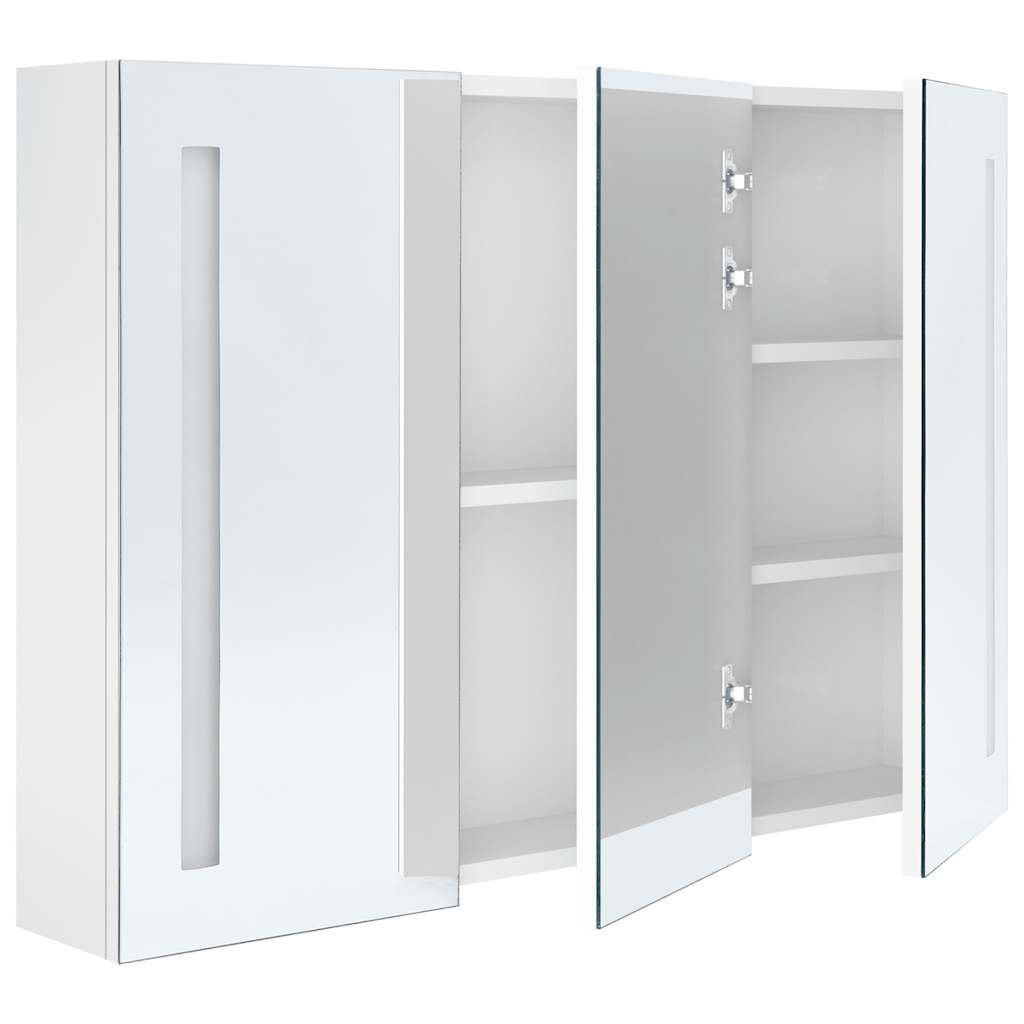 Csempésszen különleges bájt fürdőszobájába LED-es tükrös szekrényünkkel! A LED-fényekkel ellátott fali tükrös szekrényünk egy csipetnyi modern stílust és lágy világítást visz minden helyiségbe! Melamin bevonatú minőségi MDF lemezből készült, garantálva a hosszú távú használatot. A két energiatakarékos LED-es fénycsíknak köszönhetően a legmegfelelőbb fényben láthatja magát sminkeléshez, arc- és bőrápoláshoz, és nem csak a szoba szépül meg, de arca és mosolya is. Három polca bőséges helyet biztosít piperecikkei és kozmetikai kiegészítői tárolására. Az alsó gombbal egyszerű be- és kikapcsolni a világítást. A stílusos és praktikus szekrény biztosan különlegessé teszi szobáját! A szekrény könnyen felszerelhető a falra. Megjegyzés:A termék USB-csatlakozóval rendelkezik, ám a hitelesített 5 V-os USB áramforrást a csomag nem tartalmazza. Kérjük, vegye figyelembe, hogy csak tanúsított DC 5V bemenetet használjon. A magasabb feszültség túlmelegedést okozhat, és a készülék károsodását, valamint a túlmelegedés és a tűz lehetséges kockázatát okozhatja.