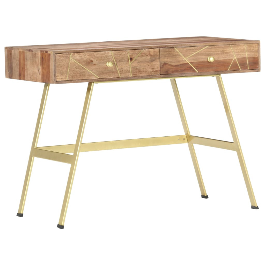 Ez az íróasztal különleges kiegészítője lesz otthonának ipari megjelenésével. Akár számítógépasztalként vagy tálalóasztalként is használható. Az asztallap tömör akácfából készült, mely egy, a gazdag erezetéről ismert trópusi keményfa, és akácia vagy paliszanderként is ismert. Az erős acéllábak hozzájárulnak az íróasztal szilárd szerkezetéhez és kiemelik indusztriális varázsát. A megmunkálás minden lépése a legnagyobb odafigyelés mellett ment végbe, legyen szó a polírozásról, a festésről vagy a lakkozásról. Ráadásul az íróasztal 2 fiókkal lett ellátva, melyek bőséges helyet biztosítanak fontos tárgyai elérhető közelségben való tárolásához. Az asztal könnyen összeszerelhető. Fontos megjegyzés: A színárnyalat darabonként eltérő lehet, így minden íróasztal egyedi. A szállítás véletlenszerűen történik.