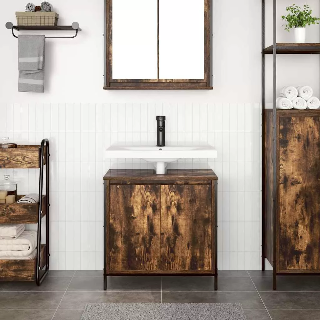 A fürdőszobai mosdószekrény sokoldalú tárolási megoldásokat kínál, rendet és szervezettséget biztosít, miközben praktikus és modern jelleget kölcsönöz életterének. Stabil és tartós anyag: A szerelt fa tartós és stabil anyag sima felülettel, amely ellenáll a nedvességnek, a vetemedésnek és a hasadásnak, így megbízható választás különféle célokhoz.Bőséges tárolóhely: A szekrény 2 rekesszel rendelkezik, ami biztosítja, hogy a tárgyak jól szervezettek és rendezettek legyenek, és bőséges helyet biztosít a különböző fürdőszobai tárgyakhoz való könnyű hozzáféréshez.Stabil és erős asztallap: A robusztus asztallap megbízható felületet kínál a legfontosabb dolgok kéznél tartásához, így tökéletes a mindennapi használatra. Akár hiúsági tárgyakat, akár dekorációs tárgyakat helyez el, tartóssága biztosítja, hogy könnyedén megbirkózzon a különböző feladatokkal.Állítható láb: A műanyag talppal ellátott lábak egyensúlyban tartják a fürdőszobaszekrényt az egyenetlen talajon, valamint fokozzák a stabilitást.Könnyen karbantartható: Sima felületének köszönhetően a fürdőszobai tárolószekrény nedves ruhával könnyen tisztítható, és kevesebb gondozást igényel. Jó tudni:A szállítás a mosdót nem tartalmazza. Figyelem:A felborulás elkerülése érdekében ezt a terméket a mellékelt fali rögzítőeszközzel kell használni.