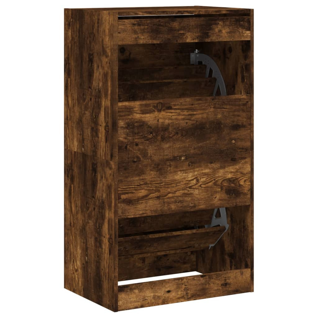 füstös tölgy cipőszekrény 2 kihajtható fiókkal 60x42x108 cm