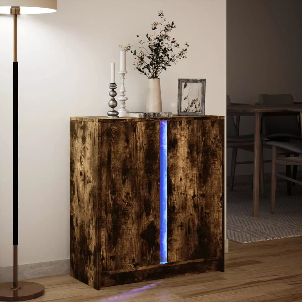 füstös tölgy szerelt fa tálalószekrény LED-del 77 x 34 x 85 cm