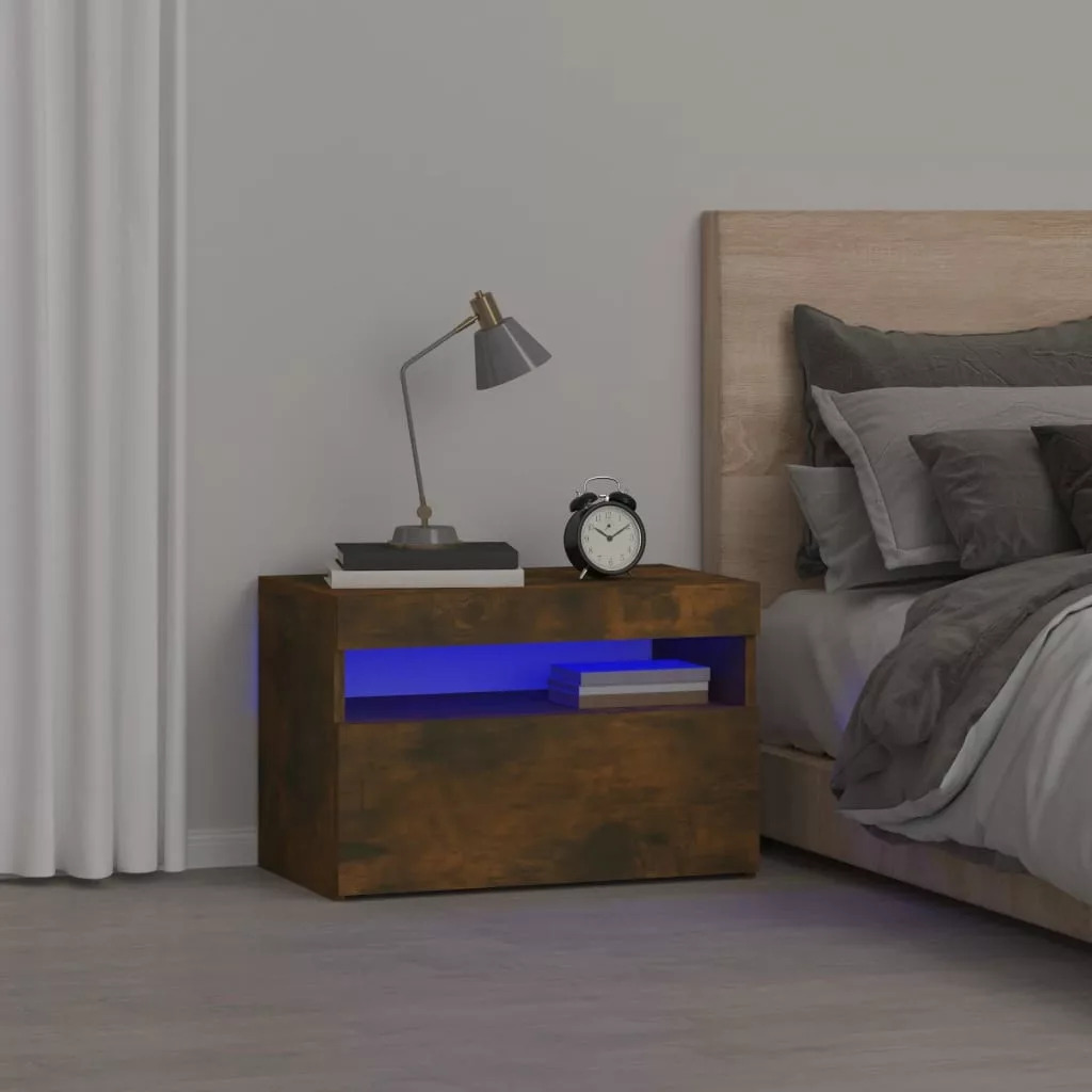 Vigyen modern bájt otthonába ezzel az elegáns éjjeliszekrénnyel! A stílusos, mégis praktikus kialakítású LED világítással ellátott éjjeliszekrény minden bizonnyal szobája középpontjává fog válni. Praktikus anyag: A szerelt fa kivételes minőségű, sima felületű, szilárd, stabil, és ellenáll a nedvességnek. Színes LED-világítás: Ez a szekrény RGB LED-világítással lett ellátva, amely különféle menükkel rendelkezik a fény színének változtatására, vagy beállítható a szín automatikus váltakozása. A LED-világítás kiemeli a szekrény modern kialakítását, és fokozza divatos hangulatát.Bőséges tárolóhely: Az éjjeliszekrény rengeteg tárhelyet biztosít folyóiratai, könyvei, távirányítói és egyéb apró tárgyai rendezetten és könnyen elérhető helyen való tartásához.Kijelző funkció: A kisszekrény masszív teteje ideális dísztárgyak, képkeretek vagy cserepes növények megjelenítésére. Megjegyzés:A termék USB-csatlakozóval rendelkezik, ám a hitelesített 5 V-os USB áramforrást a csomag nem tartalmazza.Az egyszerű összeszerelés érdekében minden termékhez mellékelünk összeszerelési útmutatót. Ne használja ezt az elemet, ha valamelyik alkatrésze eltört, elszakadt vagy hiányzik. Ez a termék DC 5V-ról működik, de a tanúsított 5V-os USB-tápforrást nem tartalmazza. A magasabb feszültség túlmelegedést okozhat, és a készülék károsodását, valamint a túlmelegedés és a tűz lehetséges kockázatát okozhatja.