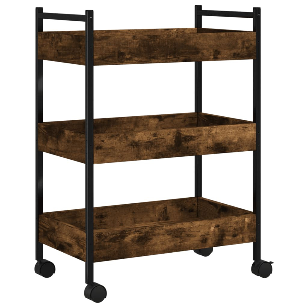 füstös tölgy színű szerelt fa zsúrkocsi 50 x 30 x 70 cm
