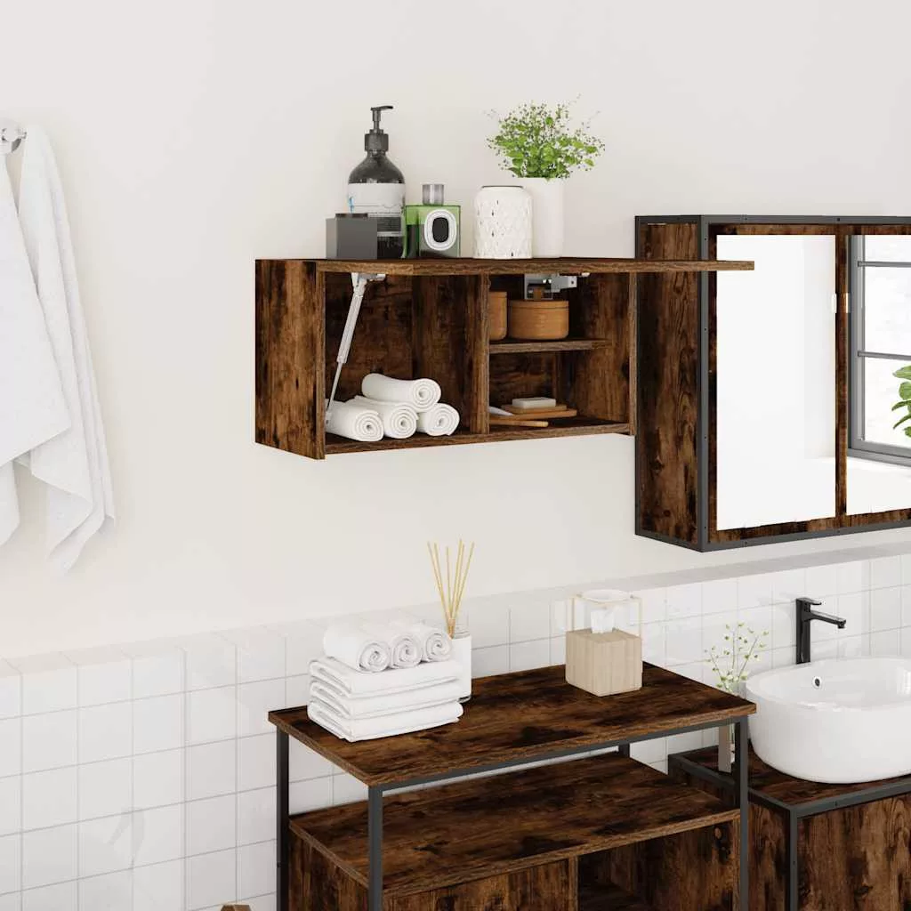 füstös tölgyszínű szerelt fa fali fürdőszobaszekrény 60x25x30cm
