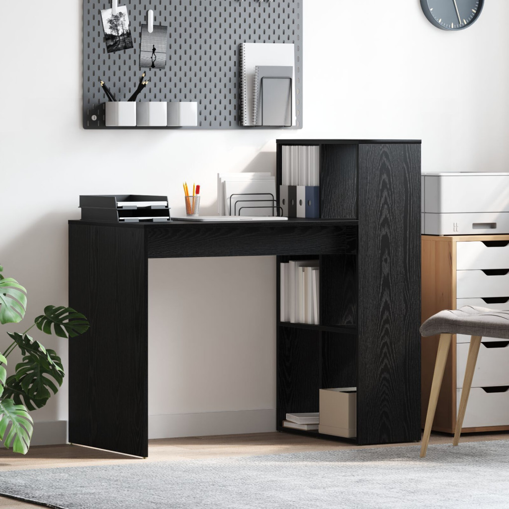 Ez a modern fekete tölgy íróasztal arra lett tervezve, hogy feldobja a munkaterületed a sima és modern dizájnnal. Remek kiegészítője bármely otthoni irodának, tanulószobának vagy kreatív térnek. Forgácslapból készült, sima matt felülettel, ez az íróasztal a funkciót és a stílust egyesíti, bőséges felületet ad az íráshoz, tanuláshoz vagy laptop használathoz, ráadásul beépített polcai segítenek rendben tartani a fontos dolgokat.