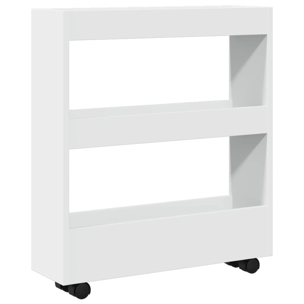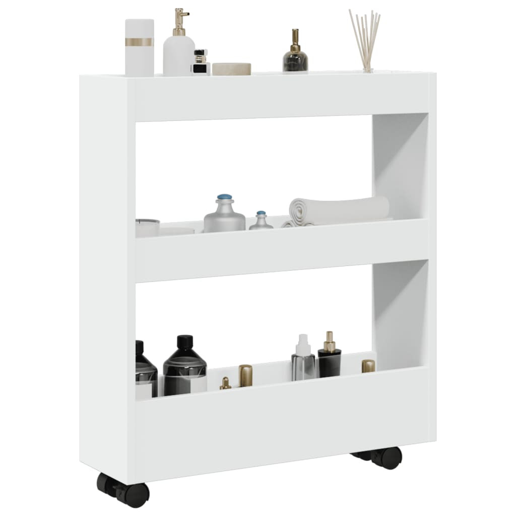 Ez a keskeny tárolókocsi dekoratív és praktikus kiegészítője lehet otthonának. Stabil és tartós anyag: A mesterséges fa tartós és stabil anyag, sima felülettel, amely ellenáll a nedvességnek, a vetemedésnek és a hasadásnak, így megbízható választás különféle projektekhez.Bőséges tárolóhely: A karcsú tárolókocsi bőséges tárolóhelyet biztosít a különféle napi szükséges holmijainak rendezett és könnyen elérhető helyen tartásához.Könnyen mozgatható: Ez a gurulós kocsi a mellékelt négy forgókerékkel könnyen áthelyezhető a kívánt helyre. A két kerék rögzíthető, ami a helyén tartja a szekrényt és stabilitást biztosít.Széleskörű felhasználási lehetőségek: Az igényeitől függően ezt a tárolókocsit keskeny alakjának köszönhetően a nappaliban, a konyhában vagy a fürdőszobában is használhatja, még kis helyeken is.