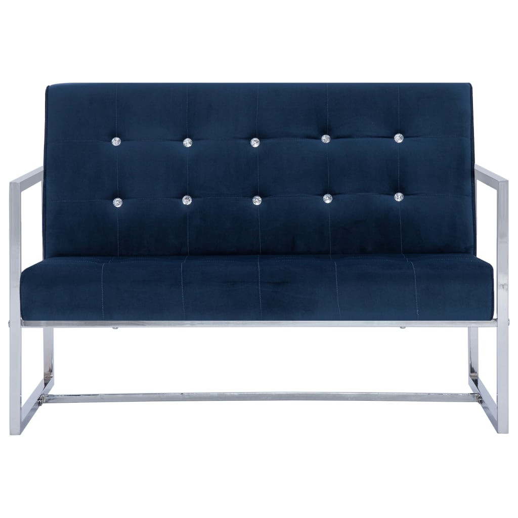 kétszemélyes kék króm és bársony karfás kanapé