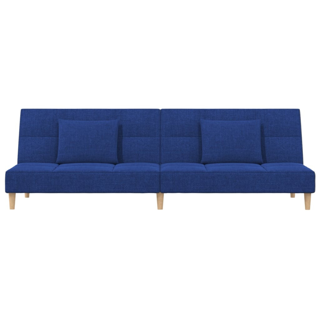 kétszemélyes kék szövet kanapéágy két párnával