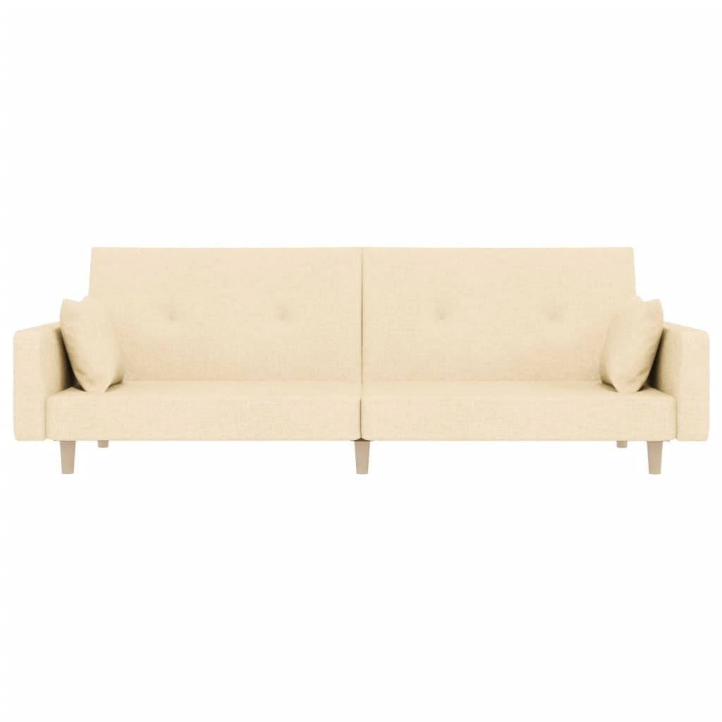 kétszemélyes krémszínű szövet kanapéágy két párnával