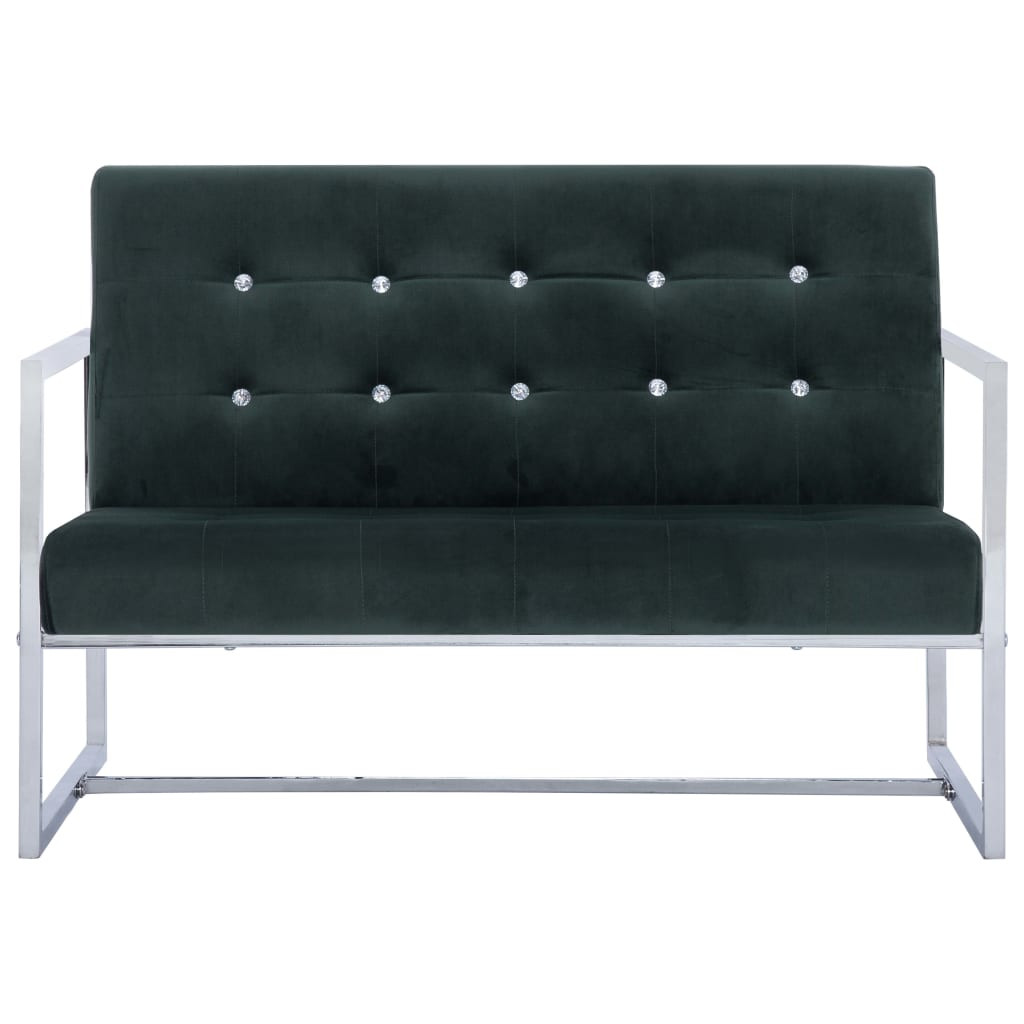 kétszemélyes sötétzöld króm és bársony karfás kanapé
