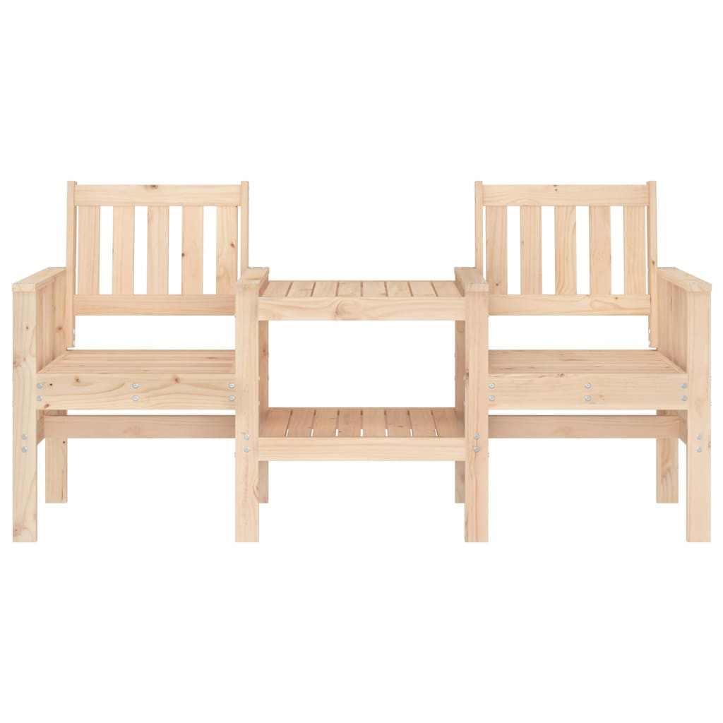 Élvezze a romantikus estéket a kerti padon egy beépített dohányzóasztallal borospoharak, harapnivalók vagy kávé számára. Tömör fenyőfa: Az asztallal ellátott kerti pad tömör fenyőfából készült a szilárdság és a stabilitás érdekében. A tömör fenyőfa egy gyönyörű, természetes anyag. A fenyőfa egyenes erezetű, a csomók pedig jellegzetes, rusztikus megjelenést biztosítanak az anyagnak.Kényelmes ülőélmény: A kültéri pad karfái és háttámlája a lehető legnagyobb kényelmet nyújtják.Praktikus integrált asztal: A beépített asztal és a két ülés közötti alsó polc ideális italok, harapnivalók, magazinok és egyéb, elérhető közelségben tartani kívánt tárgyak tárolására.Rácsos kialakítás: A kültéri pad lécezett kialakítása megakadályozza a víz felgyülemlését, szárazon tartja az ülést és megakadályozza a szükségtelen korhadást. Jó tudni:A kültéri bútor szépségének megőrzése érdekében javasoljuk, hogy vízálló huzattal fedje be. Maximum 110 kg ülésenként.