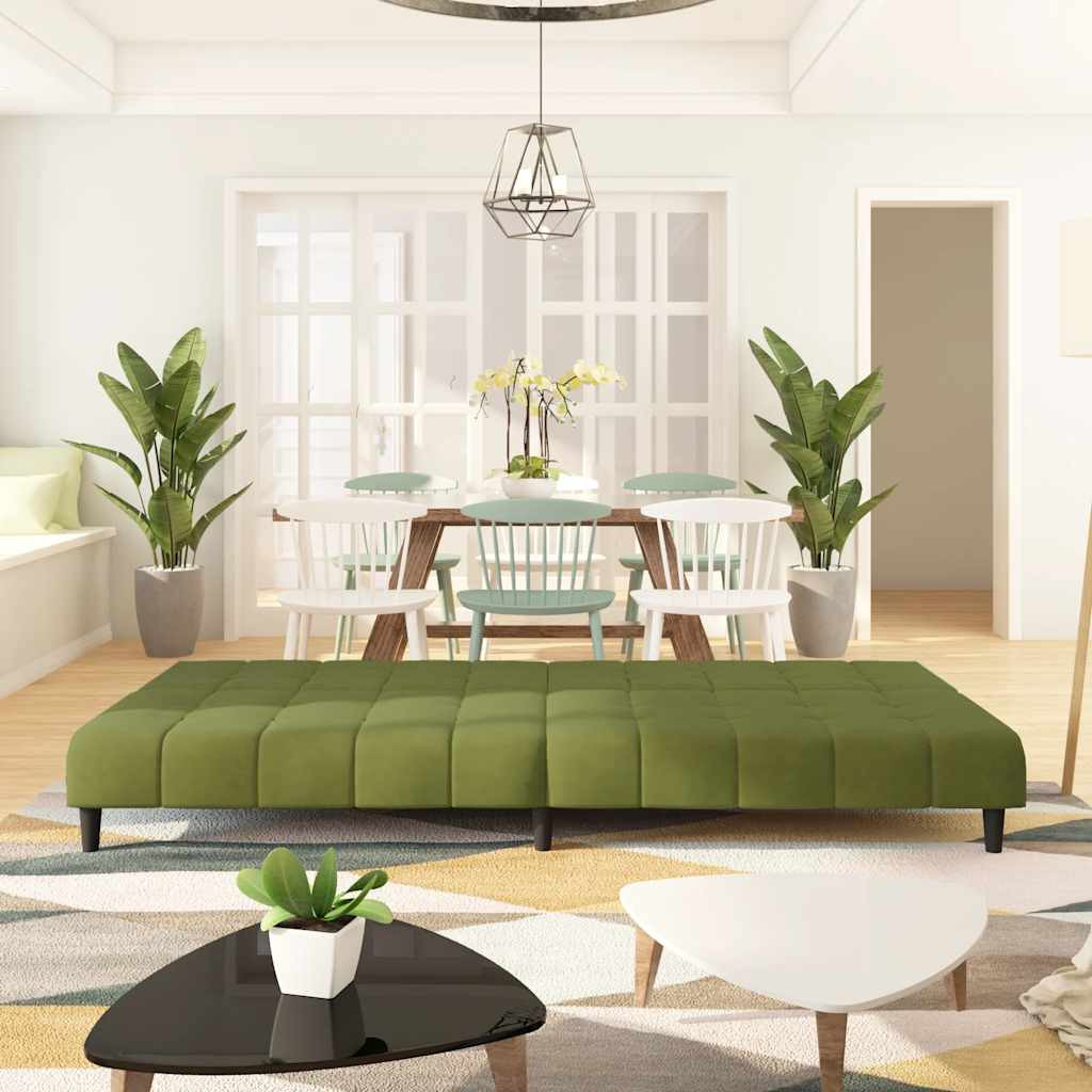 Ez a kanapéágy tökéletes megoldás a vendégek elszállásolására, napközben pedig kényelmes ülőalkalmatosságként szolgálhat. 2 az 1-ben funkció: Ez a kanapéágy gyorsan és egyszerűen átalakítható kanapéból ággyá és vissza. A két különálló háttámlát részben vagy teljesen lenyomhatja, így ideális helyet alakíthat ki a szundikáláshoz vagy egy franciaágyhoz.Kényelmes ülésélmény: Ez a kanapéágy puha és kényelmes bársonnyal lett bevonva. A bársony egy puha, fényűző anyag, amely sűrű, egyenletesen vágott sima szálairól ismert. A bársonyanyag jellegzetesen puha, így kényelmes tapintású.Masszív és stabil váz: Ez a kétszemélyes kanapé fa vázzal rendelkezik, így stabil és masszív.Többcélú: Ez a vendégágy kiváló különféle helyiségekbe, például a nappaliba, házimoziba, pincébe, kis szobákba, kollégiumokba, apartmanokba, stúdiókba és irodákba. Vidám családi szórakozást biztosít, és a helyiség összképét is feldobja.