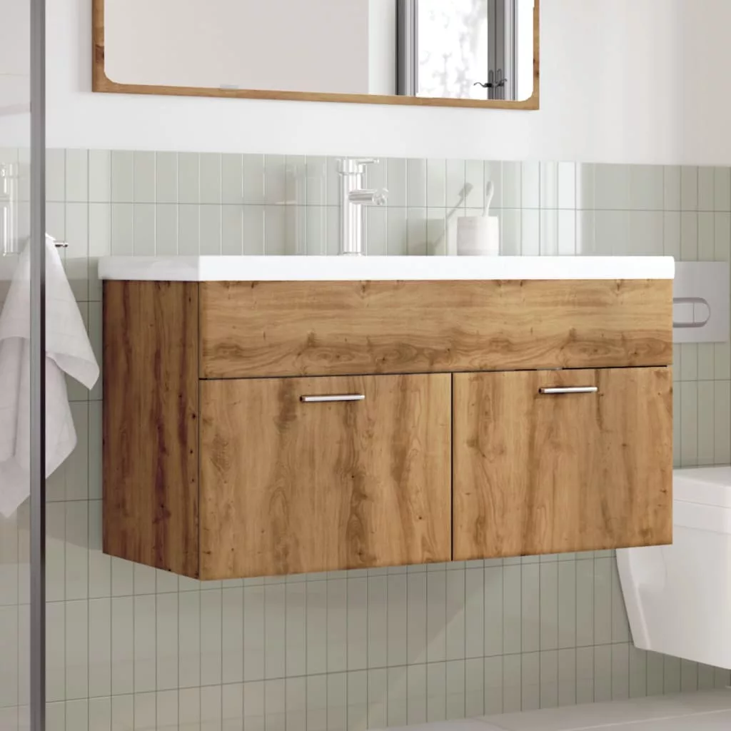 Ez a tágas tárolórésszel rendelkező, stílusos mosdószekrény beépített mosdóval fürdőszobája nagyszerű kiegészítője lesz, rendezett és lenyűgöző megjelenést kölcsönözve neki!Hosszú élettartamú anyag: A szerelt fa kivételes minőségű, sima felületű, szilárd, stabil, és ellenáll a nedvességnek.Bőséges tárolóhely: A fürdőszobai mosdószekrény bőséges helyet biztosít az alapvető pipere- és fürdőcikkek, például a szappanok, a sampon, a fogkrém stb. számára.Helytakarékos kialakítás: A fürdőszobai szekrény teteje ideális a mosdókagyló elhelyezésére, így teljes mértékben kihasználhatja a mosdó alatti üres helyet.Falra szerelhető: A fürdőszobaszekrény falra szerelhető, így extra tárolóhelyet biztosít. Ezáltal maximalizálhatja az alapterületet, és tisztán tarthatja a környezetét.Könnyen karbantartható: Sima felületének köszönhetően a fürdőszobaszekrény nedves ruhával könnyen tisztítható, és kevesebb gondozást igényel.Jó tudni:A falon belüli csavarok és dugók nem alaptartozékok. Azt tanácsoljuk, hogy keressen és használjon kifejezetten az Ön falához megfelelő csavarokat és dugókat. Ha nem biztos benne, konzultálhat egy szakemberrel. Kérjük, olvassa el és kövesse az utasítások minden lépését. A gyermekeket felügyelni kell, hogy ne játszhassanak az eszközzel. Tartsd távol a gyermekeket a szerelési területtől. Figyelem: Olvasd el alaposan az utasításokat használat előtt, és tartsd meg későbbi hivatkozásra.