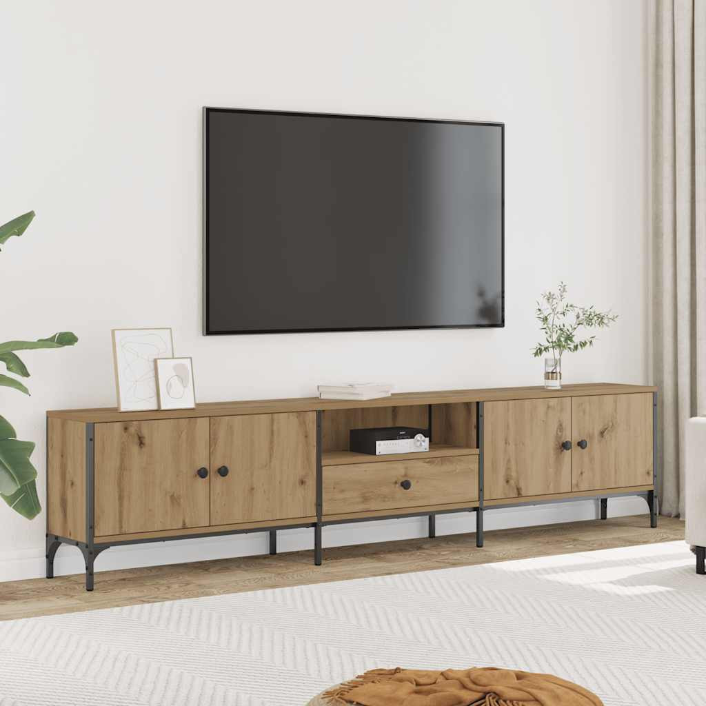 Ez a divatos, mégis praktikus kialakítású TV-szekrény garantáltan szobája központi eleme lesz.Tartós és masszív anyag: A szerelt fa kivételes minőségű, sima felületű, szilárd, stabil, és ellenáll a nedvességnek. A TV-állvány fém váza erős szerkezetet és stabilitást biztosít.Bőséges tárolóhely: A médiaszekrény bőséges helyet kínál az összes magazin, DVD és egyéb tárgy rendezett és elérhető helyen történő tárolásához.Masszív felső lap: A hifi-szekrény masszív lapja ideális dísztárgyak, képkeretek vagy cserepes növények elhelyezésére.Állítható láb: A műanyag talppal ellátott lábak egyensúlyban tartják a médiaszekrény az egyenetlen talajon, és növelik a stabilitását.Praktikus ajtók: Tartsa pormentesen legfontosabb dolgait a TV-konzol ajtajai mögé rejtve.
