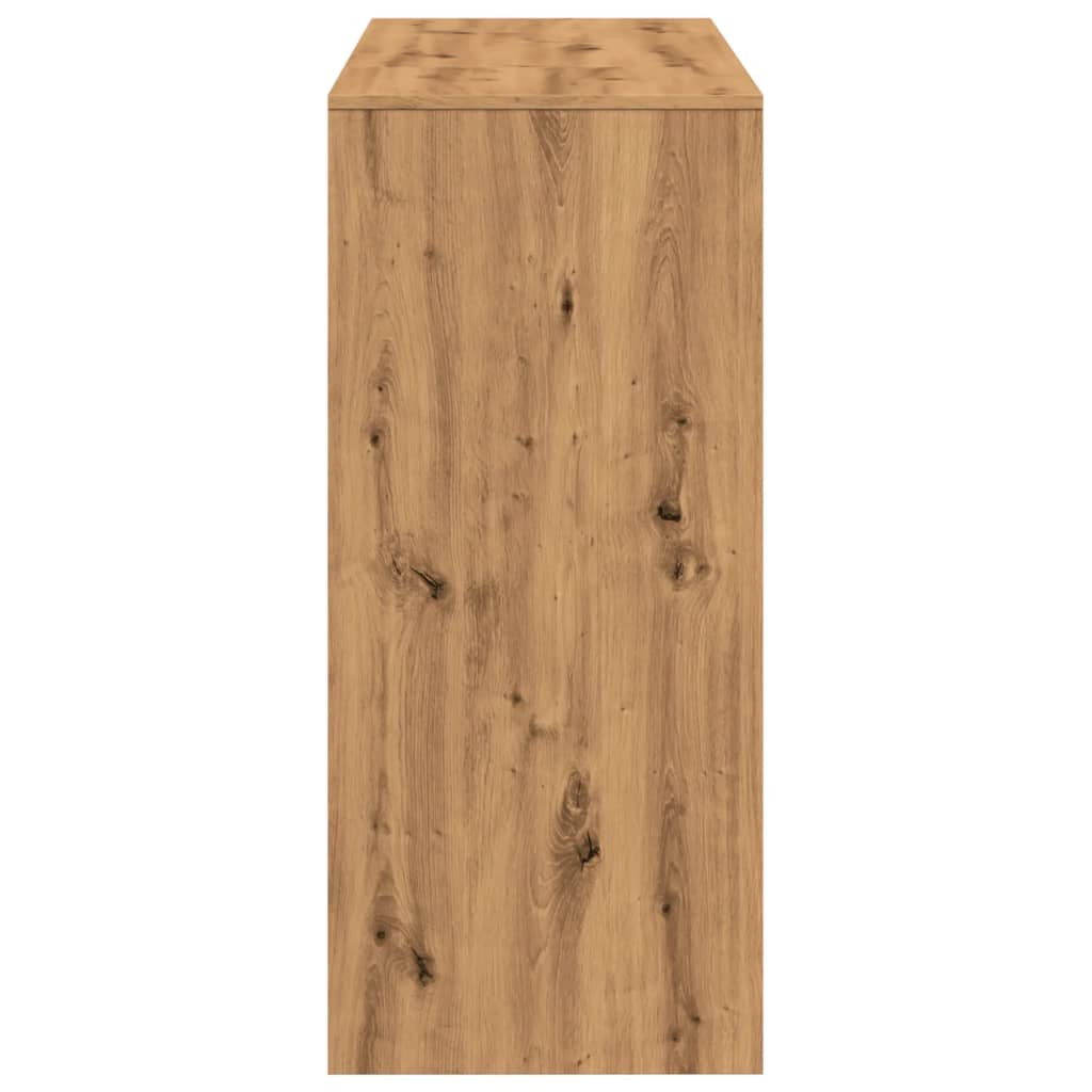 Ez a bárasztal esztétikus és praktikus megjelenést visz otthonába! Stabil és tartós anyag: A szerelt fa tartós és stabil anyag sima felülettel, amely ellenáll a nedvességnek, a vetemedésnek és a hasadásnak, így megbízható választás különféle célokhoz.Bőséges tárolóhely: A négy tárolórekesszel rendelkező bárszekrény bőséges helyet biztosít palackok, borok, könyvek, képkeretek, konyhai eszközök, étkészletek és egyebek számára.Sokoldalúan elhelyezhető: Akár a konyhában, akár a nappaliban vagy az étkezőben helyezi el, ez a magas asztal minden helyiséget szebbé tesz. Hívogató megjelenésének köszönhetően tökéletes központi eleme lesz a meghitt összejöveteleknek és a kellemes beszélgetéseknek.Könnyen gondozható: Sima felületének köszönhetően a kocsmaasztal nedves ruhával könnyen tisztítható, és kevesebb gondozást igényel. Figyelem:A felborulás elkerülése érdekében ezt a terméket a mellékelt fali rögzítőeszközzel kell használni. Jó tudni:A falon belüli csavarok és dugók nem alaptartozékok. Azt tanácsoljuk, hogy keressen és használjon kifejezetten az Ön falához megfelelő csavarokat és dugókat. Ha nem biztos benne, konzultálhat egy szakemberrel. Kérjük, olvassa el és kövesse az utasítások minden lépését.