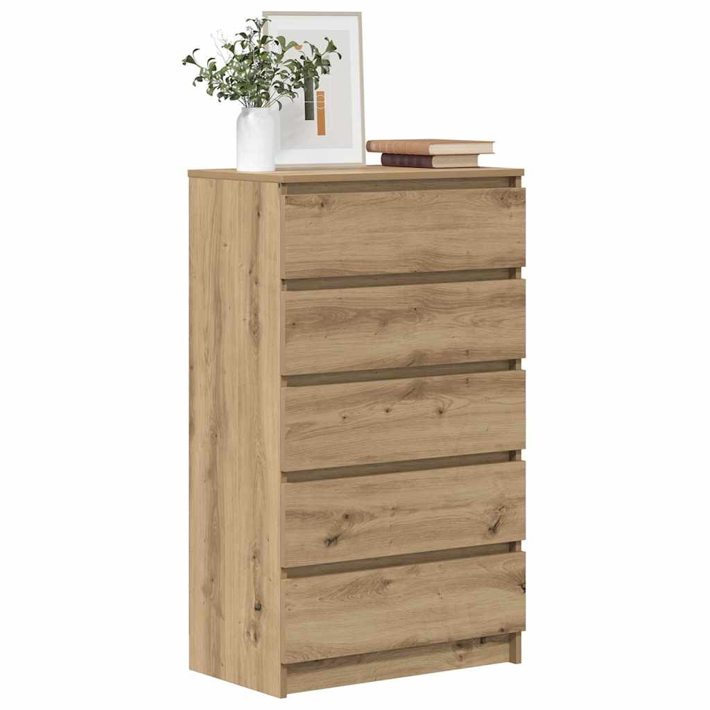 Stílusos fiókos szekrényre vadászik? Ez a jól megtervezett fiókos szekrény elegáns bájt varázsol meglévő belső terébe! Stabil és tartós anyag: A szerelt fa tartós és stabil anyag sima felülettel, amely ellenáll a nedvességnek, a vetemedésnek és a hasadásnak, így megbízható választás különféle célokhoz.Bőséges tárolóhely: Ez az 5 nagy fiókos komód bőséges tárolóhelyet biztosít a különböző napi szükségleti cikkek rendezett és könnyen elérhető tárolásához.Stabil lap: A masszív lap tökéletes helyet nyújt cserepes növények, képkeretek és egyéb dísztárgyak elhelyezésére.Könnyen karbantartható: A fiókos komód sima felületének köszönhetően könnyen tisztítható nedves ruhával, és kevesebb karbantartást igényel. Figyelem:A felborulás elkerülése érdekében ezt a terméket a mellékelt fali rögzítőeszközzel kell használni.
