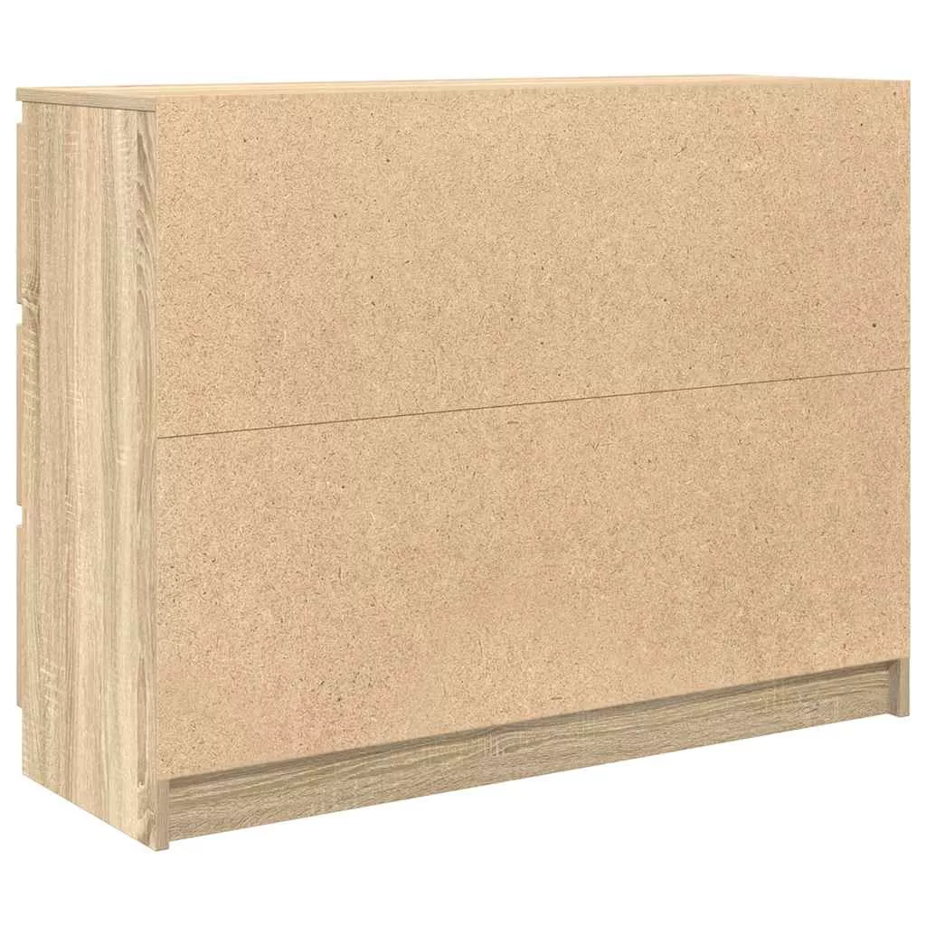 Ez a minimalista stílusú, fából készült komód számos igényét kielégíti, és otthona berendezésének ideális kiegészítője lesz. Stabil és tartós anyag: A szerelt fa tartós és stabil anyag sima felülettel, amely ellenáll a nedvességnek, a vetemedésnek és a hasadásnak, így megbízható választás különféle célokhoz.Bőséges tárolóhely: A büfé bőséges tárolóhelyet kínál az étkezési és egyéb háztartási cikkek számára, hogy azok rendezettek és elérhetőek legyenek.Robusztus asztallap: A tárolószekrény masszív asztallappal rendelkezik, amelyre dísztárgyakat, fotóalbumokat, vagy kis növényeket helyezhet.Széleskörű felhasználás: Ezt a tálalószekrényt fürdőszoba- vagy konyhaszekrényként, illetve elegáns tárolószekrényként hálószobákban, mosdókban, előszobákban, folyosókon, irodákban, étkezőkben és egyéb helyiségekben.Könnyen karbantartható: Sima felületének köszönhetően a szekrény nedves ruhával könnyen tisztítható, és kevesebb gondozást igényel. Figyelem:A felborulás elkerülése érdekében ezt a terméket a mellékelt fali rögzítőeszközzel kell használni.