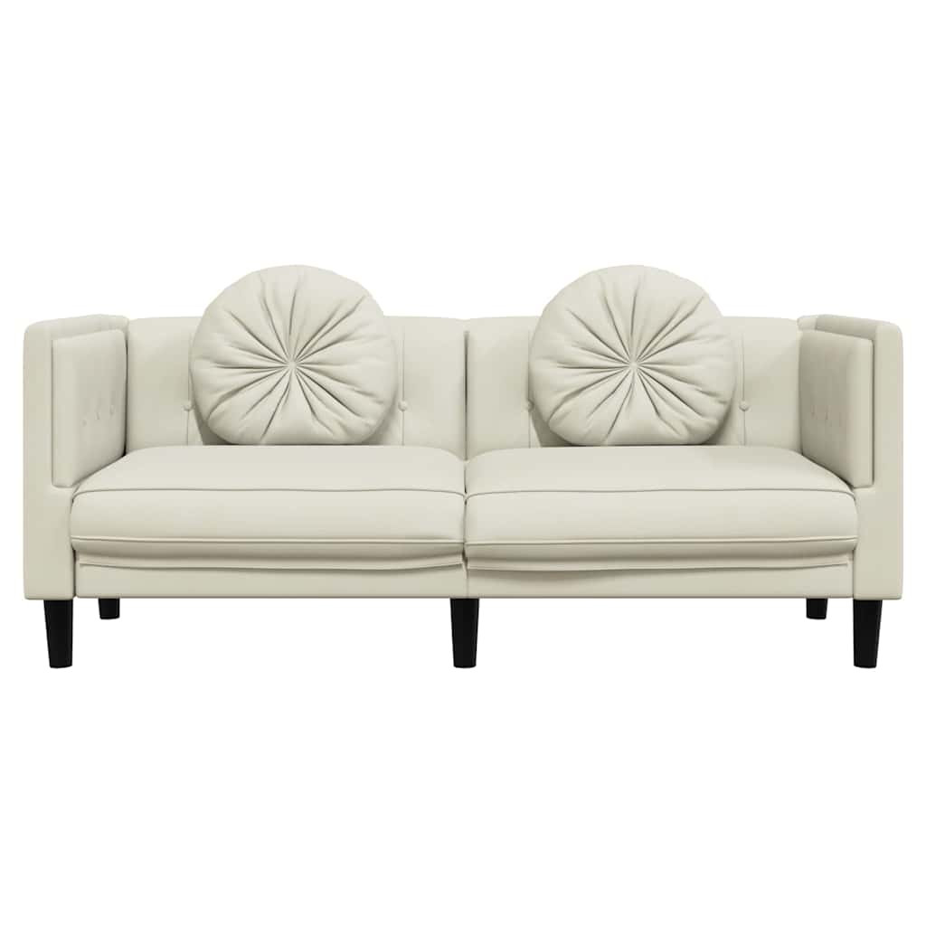 krémszínű bársony kétszemélyes kanapé párnákkal