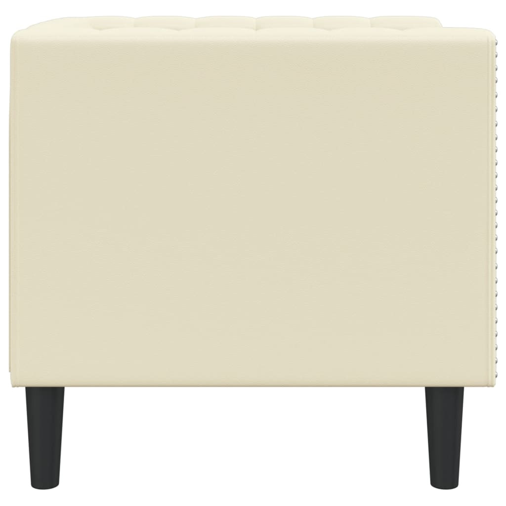 Ez a chesterfield kanapé kiváló hely a beszélgetéshez, olvasáshoz, tévézéshez vagy akár pihenéshez. Célja, hogy otthona fókuszpontja legyen. Hosszú élettartam és egyszerű gondozás: A műbőr rendkívül tartós anyag, amely ellenáll a foltoknak, így könnyen tisztítható egy nedves ruhával. Sima felülete a valódi bőrre emlékeztető elegáns megjelenést biztosít.Kényelmes ülőélmény: A kanapészék rendkívül kényelmes a vastagon párnázott ülésével, karfájával, és háttámlájával.Chesterfield stílus: A klasszikus gombokkal tűzdelt háttámlával és karfákkal, valamint az egységes hát- és karmagassággal a kanapé minden helyiséget feldob, stílust és kényelmet biztosítva.Tömör lábak: A kárpitozott fotelt erős lábak tartják, amelyek stabilitást, biztonságot, és szilárdságot biztosítanak.