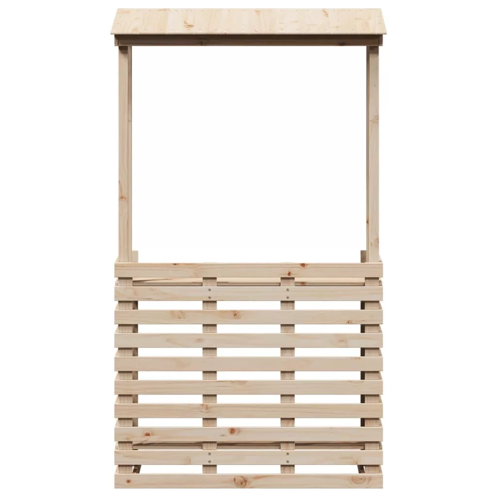Kortyolgassa kedvenc borát vagy fogyasszon el egy kellemes vacsorát családja vagy barátai társaságában ennél a kültéri bárasztalnál. Tömör fenyőfa: Ez a kültéri bárasztal tömör fenyőfából készült. A tömör fenyőfa egy gyönyörű, természetes anyag. A fenyőfa egyenes erezetű, a csomók pedig jellegzetes, rusztikus megjelenést biztosítanak az anyagnak.Praktikus tető: A kültéri kocsmaasztal tetővel rendelkezik, amely árnyékot és védelmet nyújt a közvetlen napfénnyel szemben.Tárolópolcok: A kültéri bárasztal 2 polccal rendelkezik, hogy az ételeket és italokat kézközelben tarthassa.Széleskörű felhasználás: A különleges kialakítású, kerti bárasztal kellemes összképet teremt, és bármilyen környezetbe illik. Jó tudni:A kültéri bútor szépségének megőrzése érdekében javasoljuk, hogy vízálló huzattal fedje be.