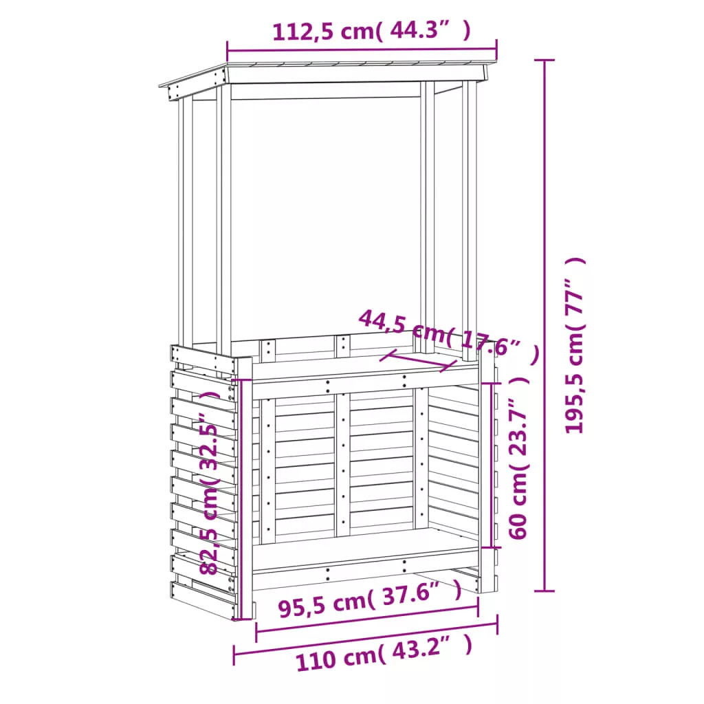 kültéri tömör fa bárasztal tetővel 112,5 x 57 x 195,5 cm