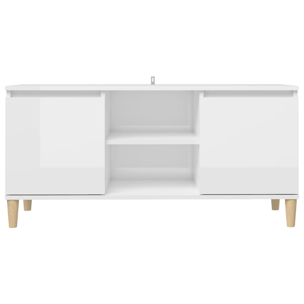 magasfényű fehér TV-szekrény tömör falábakkal 103,5x35x50 cm