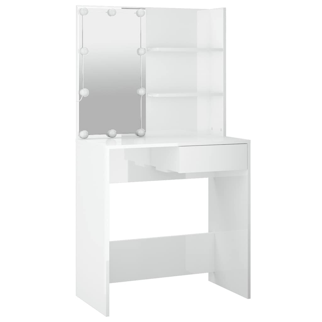 magasfényű fehér fésülködőasztal LED-del 74,5x40x141 cm