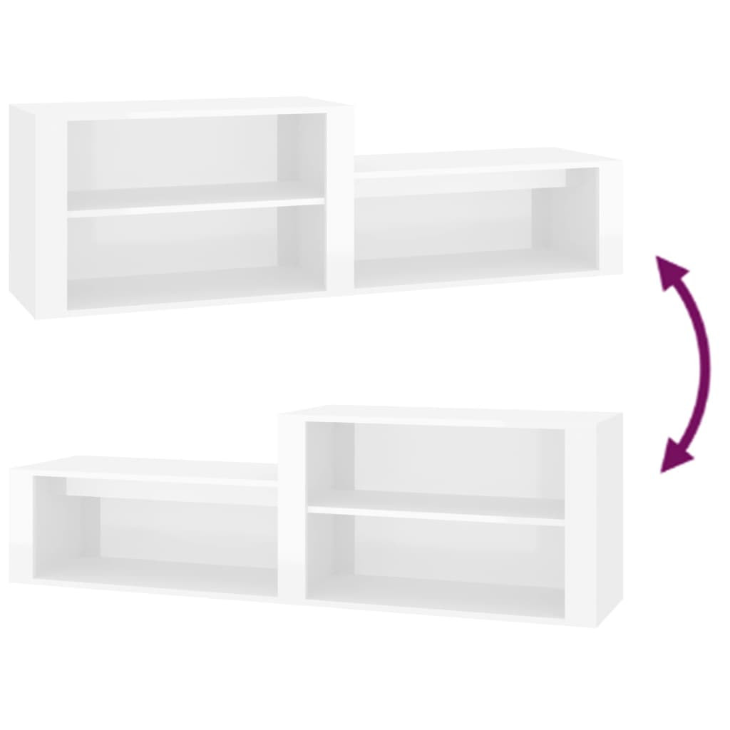 magasfényű fehér szerelt fa cipőszekrény 150x35x45 cm