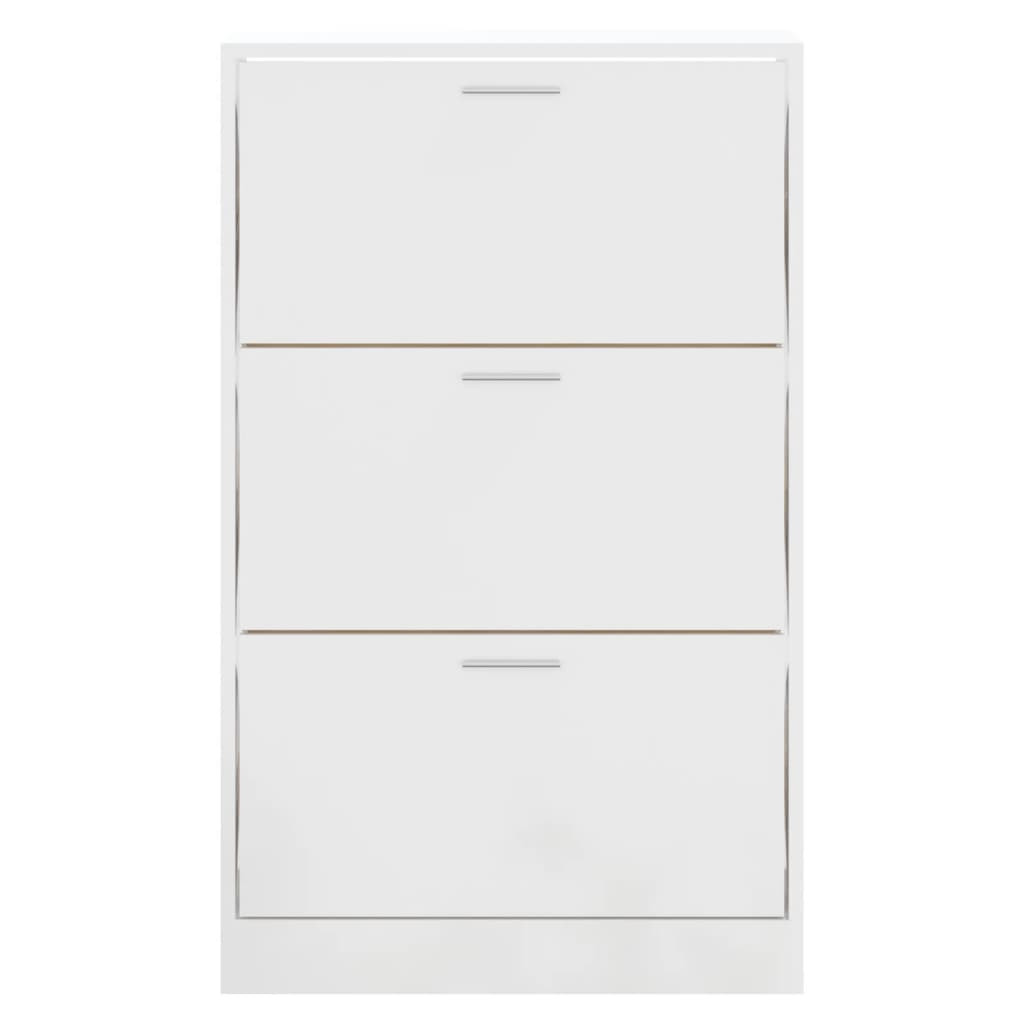 magasfényű fehér szerelt fa cipőszekrény 63x24x103 cm
