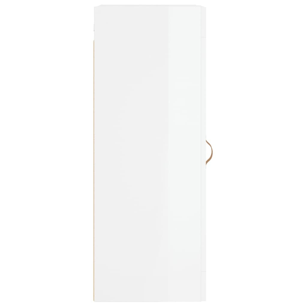 magasfényű fehér szerelt fa fali szekrény 34,5x34x90 cm