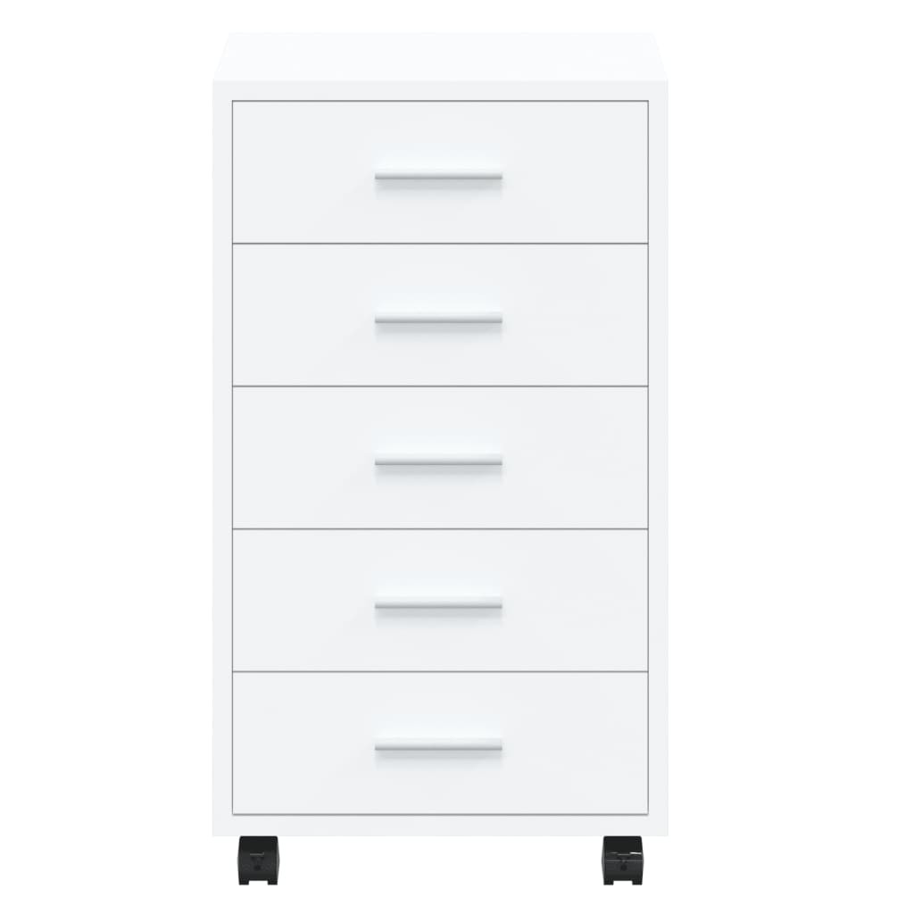 Ez a modern, elegáns, görgőkkel ellátott fiókos szekrény tökéletes és praktikus tárolóhely lesz bármilyen irodában vagy dolgozószobában. Tartós anyag: A szerelt fa kivételes minőségű, sima felületű, szilárd, stabil, és ellenáll a nedvességnek.Bőséges tárolóhely: A szekrény 5 fiókkal rendelkezik, amelyek bőséges tárhelyet biztosítanak dokumentumok, jegyzetfüzetek, tollak, papírtartó kapcsok, kulcsok és egyéb irodai kellékek számára.Rugalmas kialakítás: a 4 görgőnek köszönhetően a fiókos szekrény bárhova elhelyezhető és könnyen mozgatható. Ez a tárolószekrény tökéletesen passzol egy számítógépasztalhoz, valamint kiváló bútordarab a gyerekszobába. Megjegyzés: Az egyszerű összeszerelés érdekében minden termékhez mellékelünk összeszerelési útmutatót.