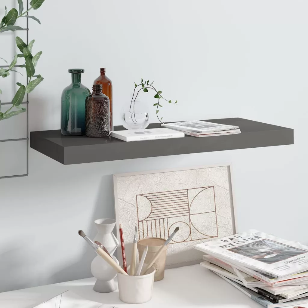 magasfényű szürke MDF lebegő fali polc 60 x 23,5 x 3,8 cm