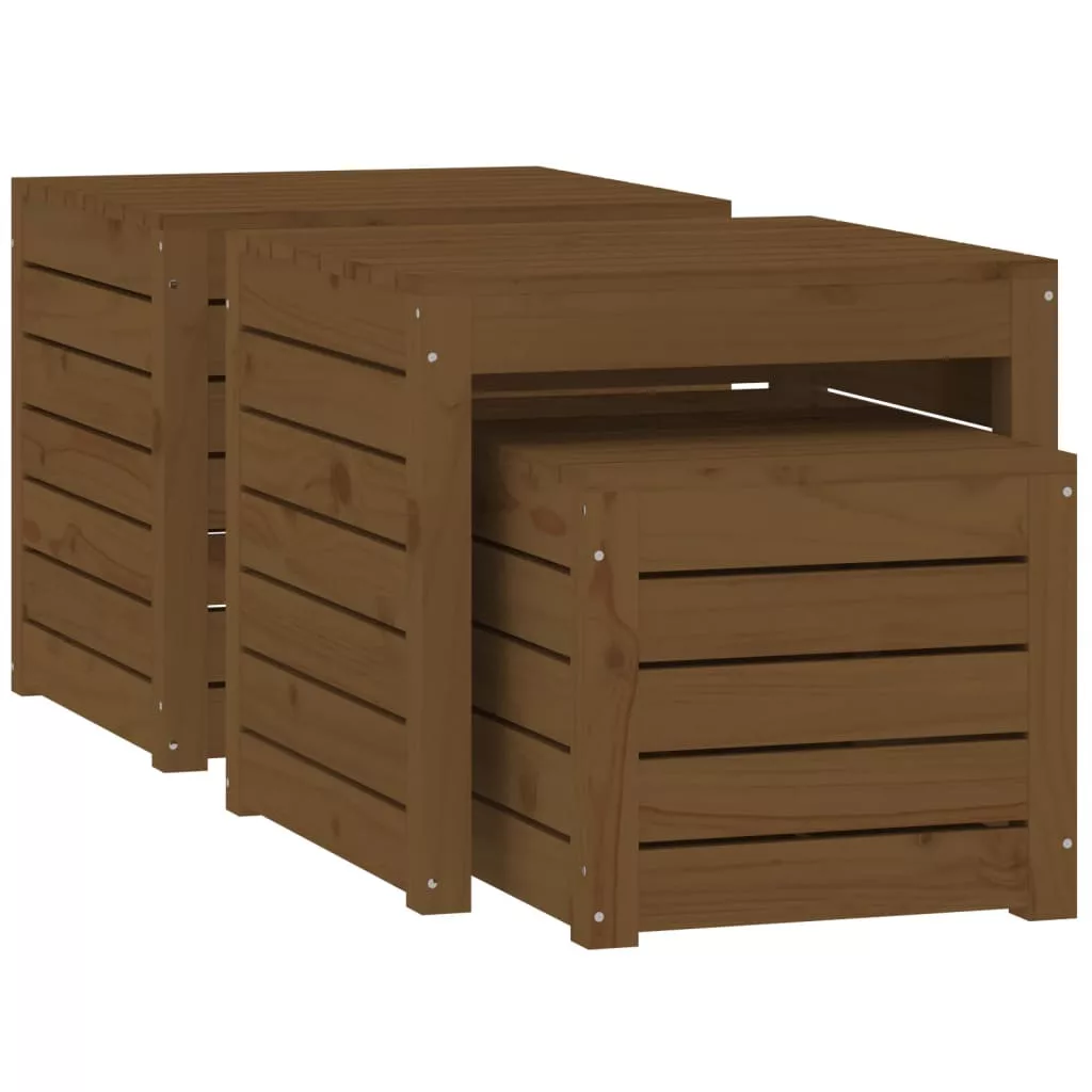 mézbarna 3 részes tömör fenyőfa kerti ládaszett