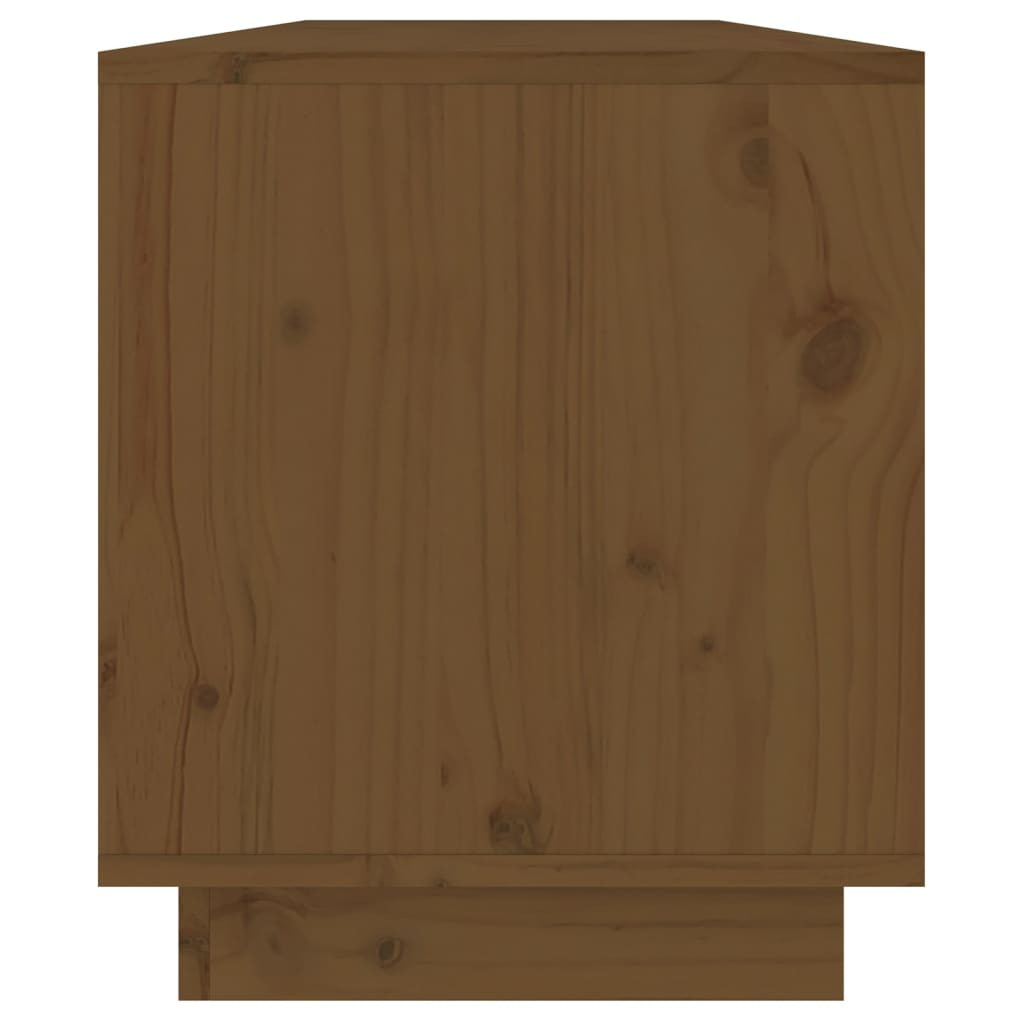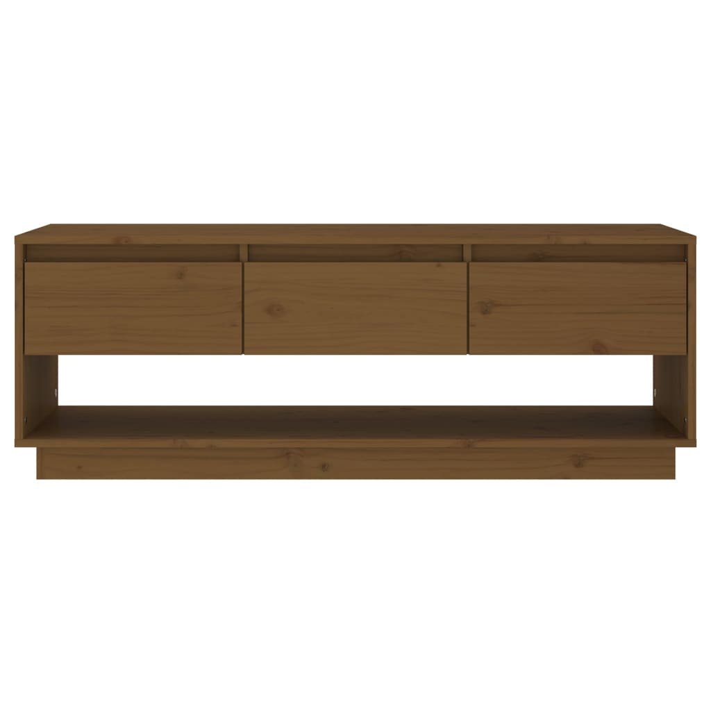 Ez a letisztult vonalvezetésű és egyszerű megjelenésű, fiókos fa TV-szekrény egy csipet eleganciát csempész szobájába. Prémium anyag: A tömör fenyőfa egy gyönyörű természetes anyag. Kezelje a felületet olajjal, viasszal, lakkal vagy mázzal az erősebb felület kialakítása és az egyszerű tisztítás érdekében. A fenyőfa erezete egyenes, a csomók adják az anyag jellegzetes, rusztikus megjelenését.Masszív és stabil váz: A fa váz erős szerkezetet és stabilitást biztosít.Bőséges tárolóhely: A TV-egység három könnyen kihúzható fiókkal és egy nagy rekesszel rendelkezik. A tárolóhely megkönnyíti a különféle tárgyak rendezett tárolását.Bemutatófunkció: A masszív asztallap ideális dísztárgyak, képkeretek vagy cserepes növények elhelyezésére.