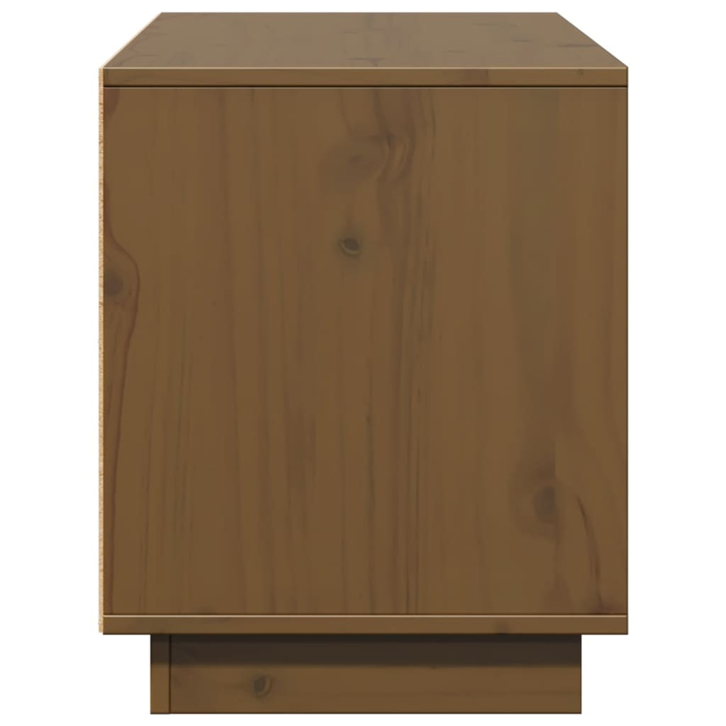 mézbarna tömör fenyőfa TV-szekrény 110,5x35x44 cm