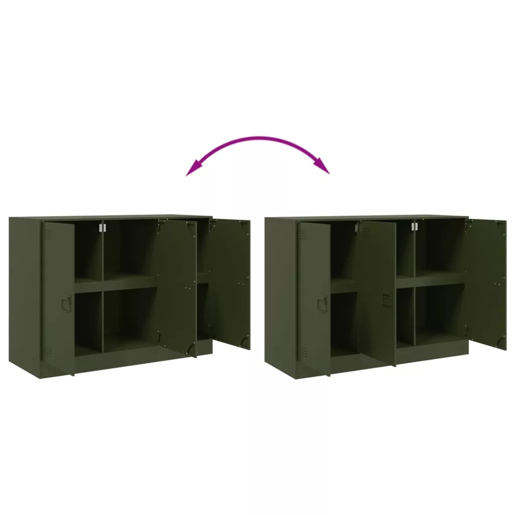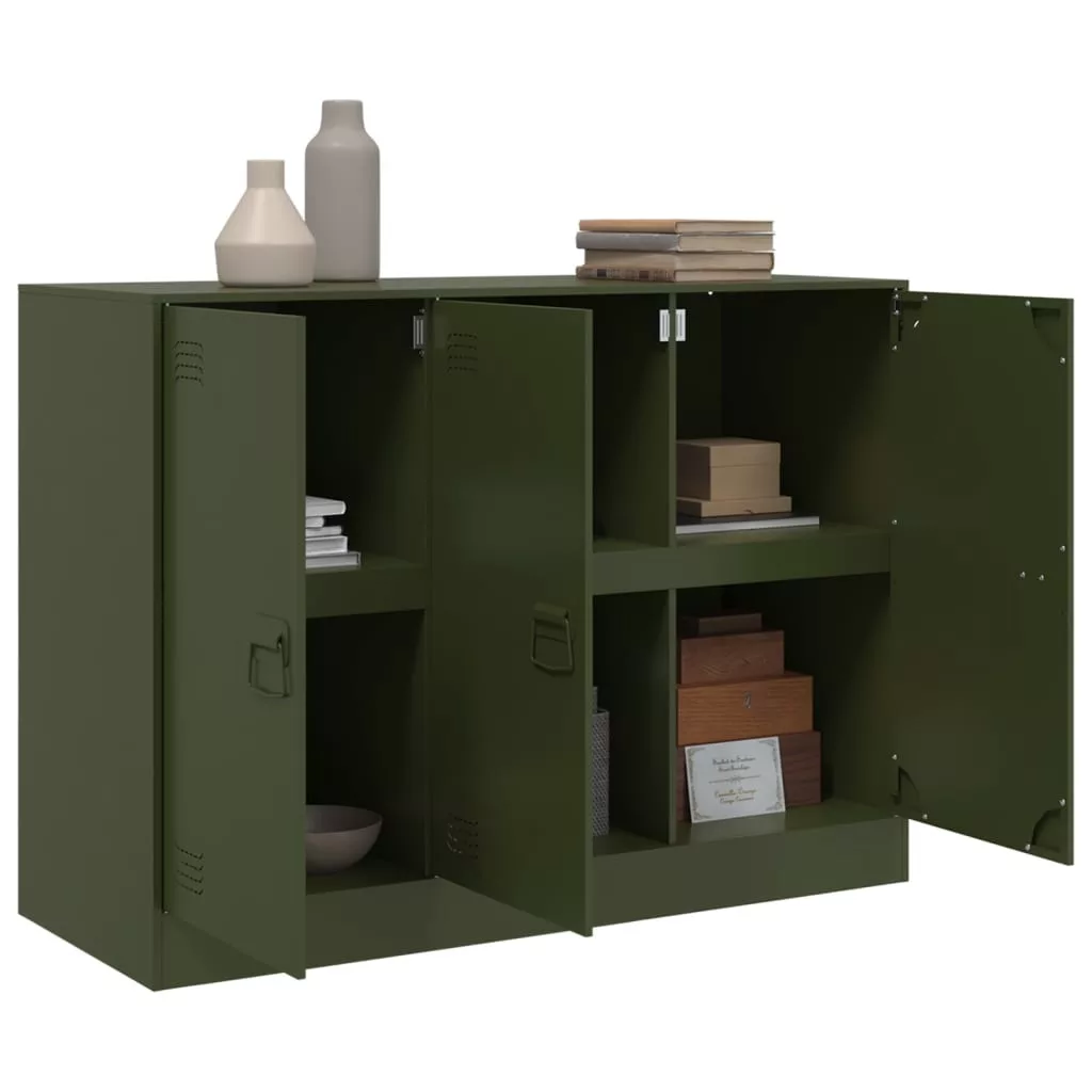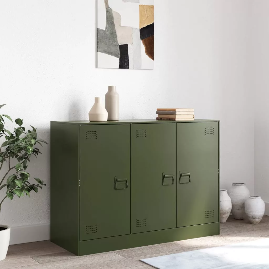 Ez a masszív tálalószekrény divatos, mégis praktikus kialakításával garantáltan szobája gyöngyszeme lesz. Stabil anyag: A tálalószekrény váza hidegen hengerelt acélból készült. A hidegen hengerelt acél egyfajta alacsony szén-dioxid-kibocsátású acél, amelyet hideghengerlési eljárással állítanak elő, és közel normál szobahőmérsékleten dolgoznak fel. A hidegen hengerelt acél simább felülettel, magasabb fokú szilárdsággal és nagyobb pontossággal rendelkezik.Bőséges tárolóhely: A tálaló praktikus helyet biztosít magazinjai, könyvei, távirányítói, és egyéb apró tárgyai kézközelben történő rendezett tárolásához.Könnyen karbantartható: Az asztal könnyen tisztítható nedves ruhával, és kevés karbantartást igényel.Praktikus fogantyú: A tálalószekrény 3 fogantyúval rendelkezik, amelyek megkönnyítik a szekrény kinyitását és zárását, miközben extra szépséget kölcsönöznek neki. Figyelem:A felborulás elkerülése érdekében ezt a terméket fali rögzítőeszközzel (nem tartozék) kell használni.