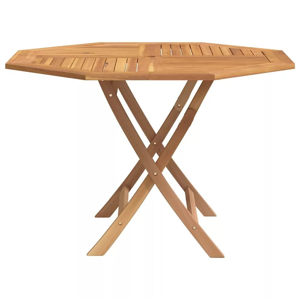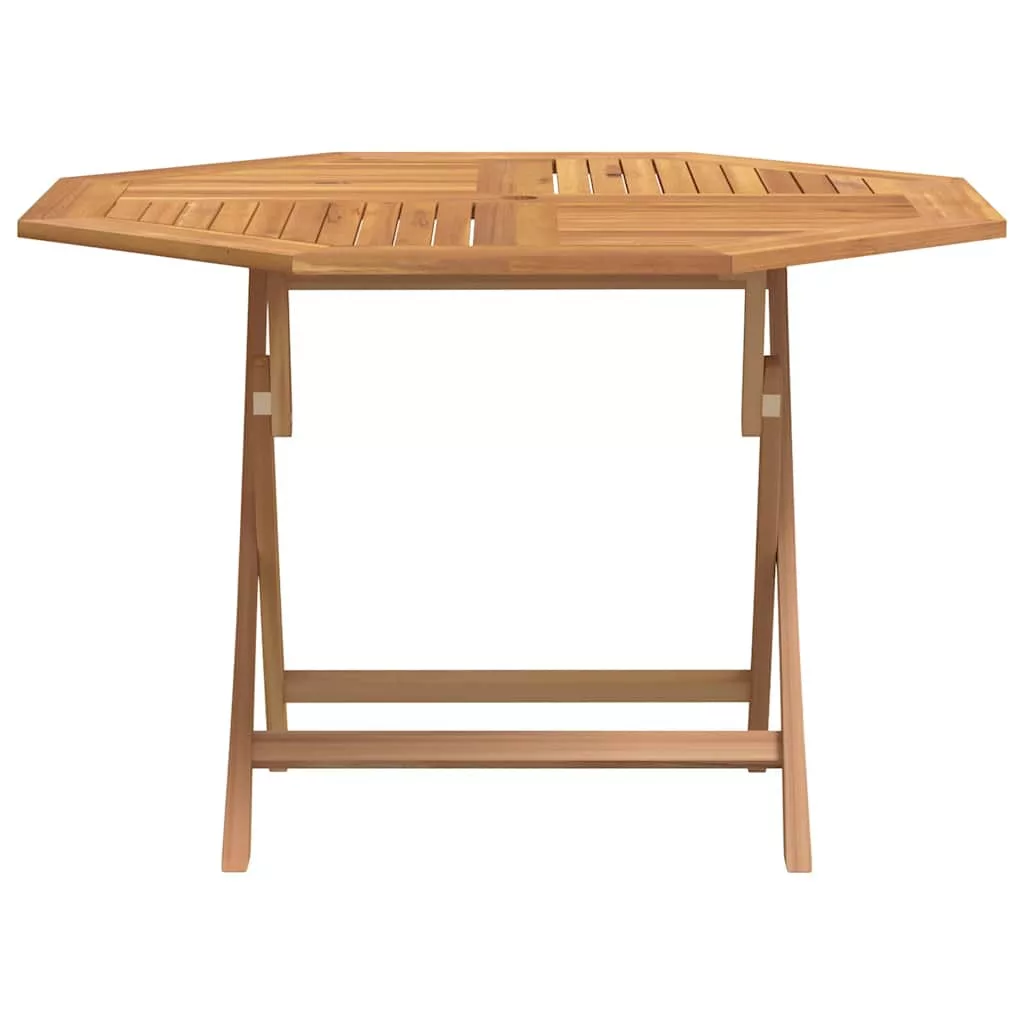 Élvezze a szabadidejét családjával és barátaival fából készült kerti asztalunk mellett! Tömör tíkfa: A tömör tíkfa egy gyönyörű, természetes anyag. A fa természetesen, illetve kemencében volt szárítva, majd finomra lett csiszolva az elegáns megjelenés érdekében. A tíkfa rendkívüli erejéről és időjárás-állóságáról ismert.Összecsukható kialakítás: A kültéri asztal a könnyű mozgatás és szállítás érdekében összecsukható. Használaton kívül kevesebb helyet foglalva tárolható.Tágas asztallap: Ez a tömör fából készült asztal tágas asztallappal rendelkezik. Rágcsálnivalókat, italokat és kedvenc dekorációit helyezheti el rajta.Hasznos nyílás: Az étkezőasztal a közepén hasznos nyílással van ellátva, ahová napernyőt helyezhet el. Így árnyékot teremthet a nyári családi összejöveteleken vagy délutáni teázásokon a barátokkal.Széleskörű felhasználás: Az asztal időtlen kialakítású, és szinte bármilyen dekorációhoz illik. Elhelyezheti otthonában vagy bármely kereskedelmi teraszon, kertben, erkélyen stb. Jó tudni:A kültéri bútor szépségének megőrzése érdekében javasoljuk, hogy vízálló huzattal fedje be.