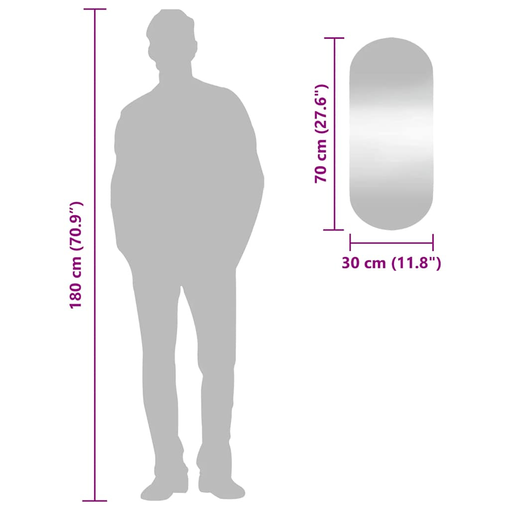 ovális üveg falitükör 30 x 70 cm