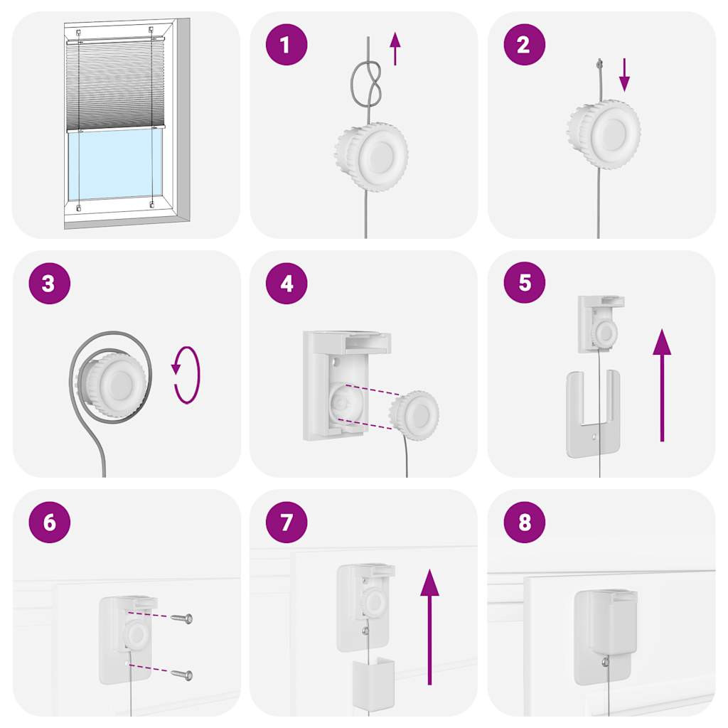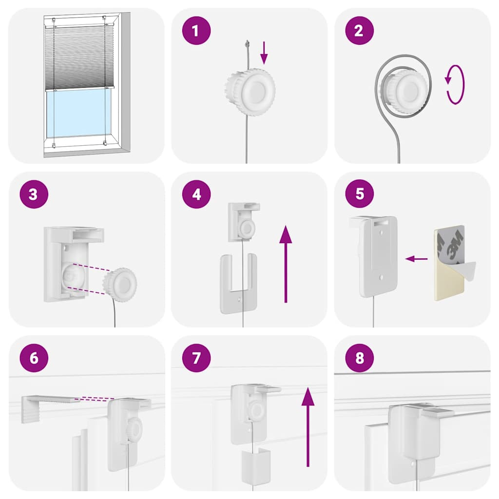 Emelje fel szobája stílusát és funkcionalitását ezzel a pliszéfüggönnyel, amely magánéletet és eleganciát kínál. Tartós és alacsony karbantartási igény: 100% poliészterből készült, a redős redőny tartós és ellenáll a kopásnak. Könnyen tisztíthatók is, általában enyhe leporolást vagy nedves ruhával való áttörlést igényelnek.Adatvédelem és napvédelem: A roló nem átlátszó, de nem is sötétedik el teljesen, redőzött szövetével optimális magánélet- és tükröződésvédelmet biztosít. Felfelé vagy lefelé mozgatásával beállíthatja az adatvédelem szintjét.Két összeszerelési mód: A pliszéfüggönyt az Ön igényeitől függően csavarokkal vagy fúrás nélkül rögzítheti a falhoz vagy az ablakhoz rögzítő konzolok segítségével.Elegáns dizájn: Elegáns és modern mintázatának köszönhetően ez a redős redőny könnyedén kiegészíti a különféle szobadekorációkat. Használhatja a nappaliban, hálószobában, irodában stb. Figyelem:Tartsa a vezetékeket kisgyermekek elől elzárva. A zsinórok a gyermek nyaka köré tekeredhetnek. Jó tudni:Mielőtt redőnyt vásárol, kezdje az ablaküveg mérésével. Csak egy baráti tipp: a szövet egy kicsit keskenyebb, mint a teljes szélesség, beleértve a konzolokat is.Annak érdekében, hogy az új redőnyök teljes lefedettséget biztosítsanak, a rendelés kiszámításakor csak adjon hozzá 0,6 cm-t az ablaküveg szélességéhez. FIGYELEM!A kisgyermekek megfulladhatnak az eszközt működtető zsinórok, láncok, szalagok és a belső zsinór hurkaiban. A fulladás és a belegabalyodás elkerülése érdekében tartsa távol a zsinórokat a kisgyermekektől. A zsinórok rátekeredhetnek a gyermek nyakára. Helyezze az ágyakat, kiságyakat és bútorokat az ablaktakaró zsinóroktól távol. Ne kösse össze a zsinórokat. Ügyeljen arra, hogy a zsinórok ne csavarodjanak össze, és ne hozzanak létre hurkokat. FIGYELEM!A gyerekek megfojthatják, ha ez a biztonsági berendezés nincs felszerelve és beállítva. Olvassa el figyelmesen az utasításokat, és telepítse annak megfelelően.