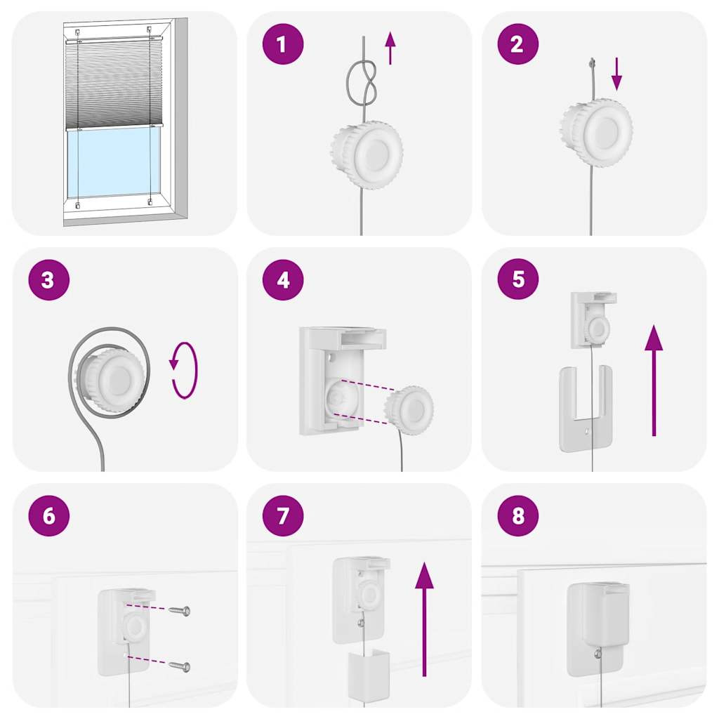 Emelje fel szobája stílusát és funkcionalitását ezzel a pliszéfüggönnyel, amely magánéletet és eleganciát kínál. Tartós és alacsony karbantartási igény: 100% poliészterből készült, a redős redőny tartós és ellenáll a kopásnak. Könnyen tisztíthatók is, általában enyhe leporolást vagy nedves ruhával való áttörlést igényelnek.Adatvédelem és napvédelem: A roló nem átlátszó, de nem is sötétedik el teljesen, redőzött szövetével optimális magánélet- és tükröződésvédelmet biztosít. Felfelé vagy lefelé mozgatásával beállíthatja az adatvédelem szintjét.Két összeszerelési mód: A pliszéfüggönyt az Ön igényeitől függően csavarokkal vagy fúrás nélkül rögzítheti a falhoz vagy az ablakhoz rögzítő konzolok segítségével.Elegáns dizájn: Elegáns és modern mintázatának köszönhetően ez a redős redőny könnyedén kiegészíti a különféle szobadekorációkat. Használhatja a nappaliban, hálószobában, irodában stb. Figyelem: Tartsa a vezetékeket kisgyermekek elől elzárva. A zsinórok a gyermek nyaka köré tekeredhetnek. Jó tudni:Mielőtt redőnyt vásárol, kezdje az ablaküveg mérésével. Csak egy baráti tipp: a szövet egy kicsit keskenyebb, mint a teljes szélesség, beleértve a konzolokat is.Annak érdekében, hogy az új redőnyök teljes lefedettséget biztosítsanak, a rendelés kiszámításakor csak adjon hozzá 0,6 cm-t az ablaküveg szélességéhez. FIGYELEM!A kisgyermekek megfulladhatnak az eszközt működtető zsinórok, láncok, szalagok és a belső zsinór hurkaiban. A fulladás és a belegabalyodás elkerülése érdekében tartsa távol a zsinórokat a kisgyermekektől. A zsinórok rátekeredhetnek a gyermek nyakára. Helyezze az ágyakat, kiságyakat és bútorokat az ablaktakaró zsinóroktól távol. Ne kösse össze a zsinórokat. Ügyeljen arra, hogy a zsinórok ne csavarodjanak össze, és ne hozzanak létre hurkokat. FIGYELEM!A gyerekek megfojthatják, ha ez a biztonsági berendezés nincs felszerelve és beállítva. Olvassa el figyelmesen az utasításokat, és telepítse annak megfelelően. GPSR