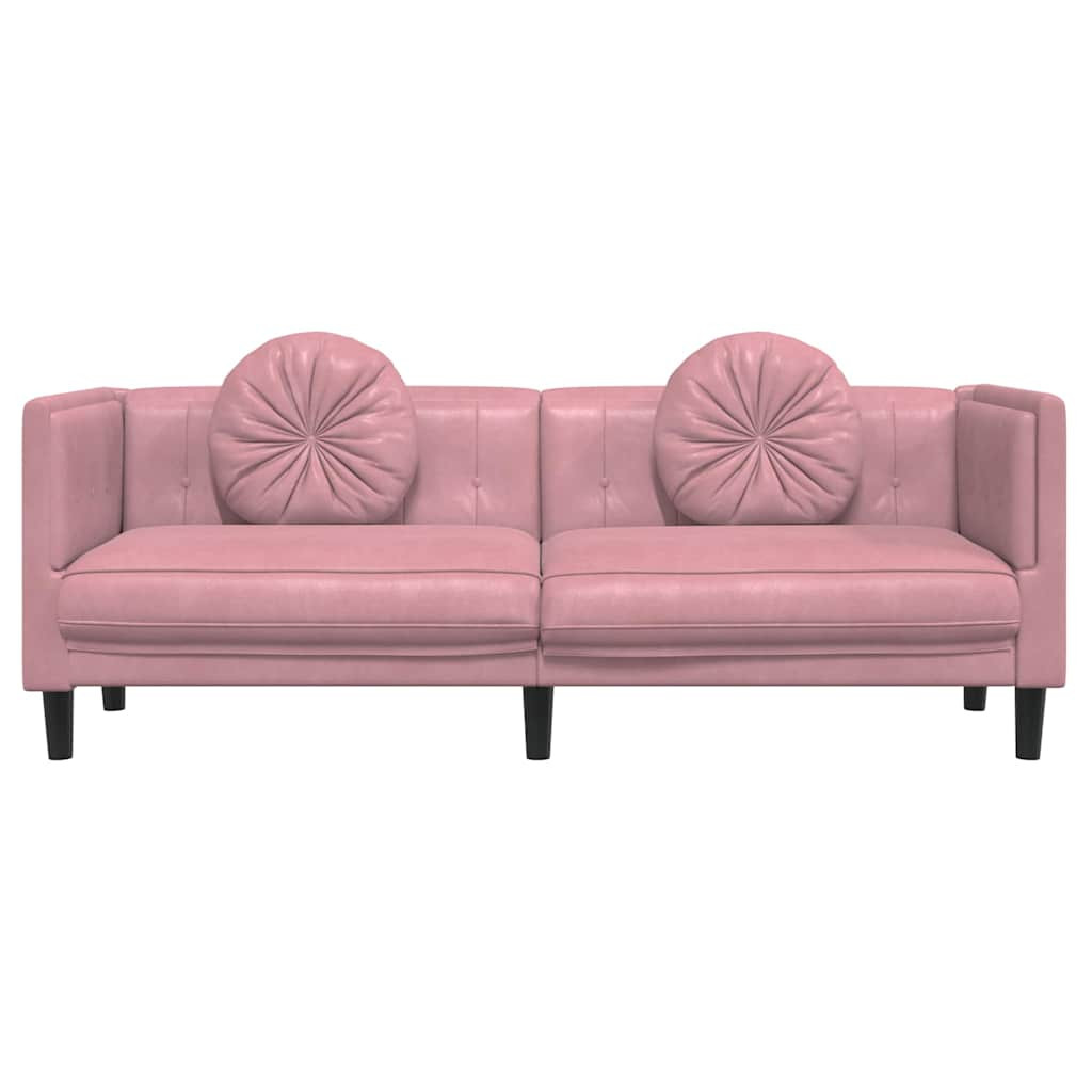 rózsaszín bársony 3 személyes kanapé párnákkal